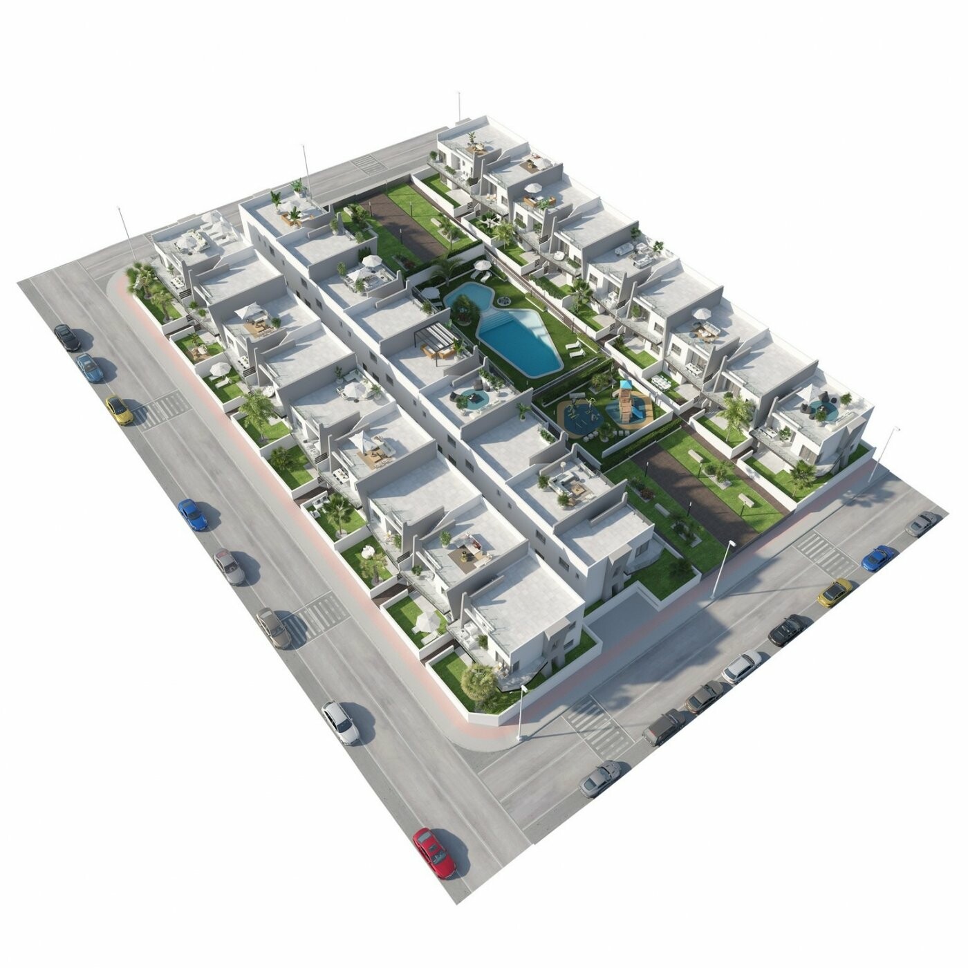 Nieuwbouw wooncomplex van 108 bungalows in San Miguel del Salinas.