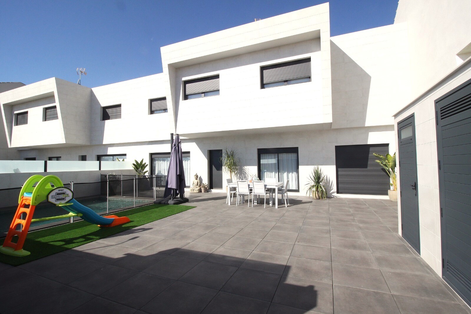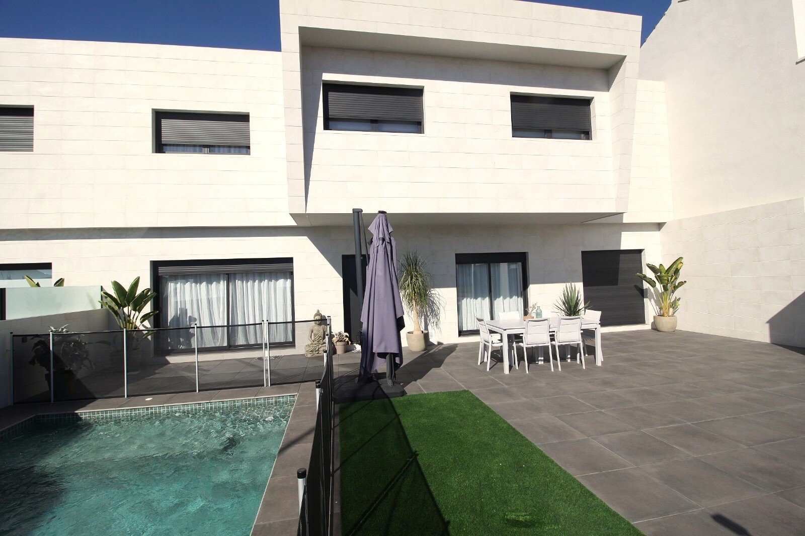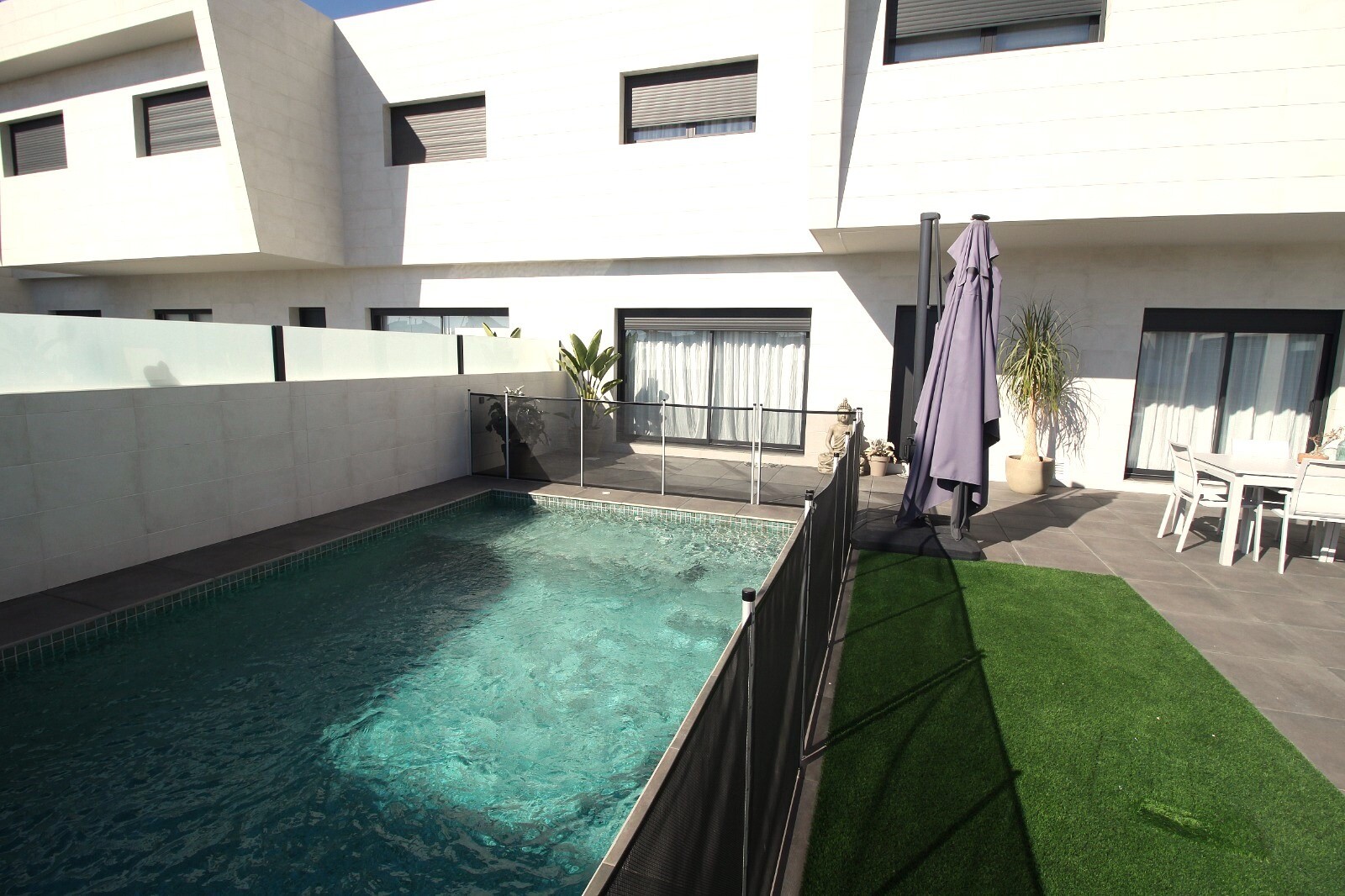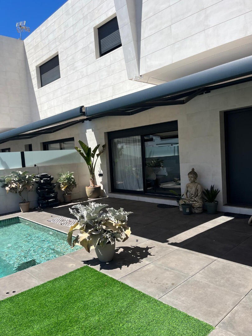 Recent geschakelde herverkoop rijwoning in San Pedro del Pinatar met 4 slaapkamers en 2 badkamers en een buitentoilet aan het zwembad van 6x4m met ingebouwde Jacuzzi. De woning bevindt zich 3km van de Middellandse Zee en 500m van het centrum. Het huis wordt volledig gemeubileerd geleverd met vloerverwarming, A/C en keukenapparaten. De luchthaven va...n Corvera en Alicante zijn respectievelijk bereikbaar in 30 en 50 minuten.