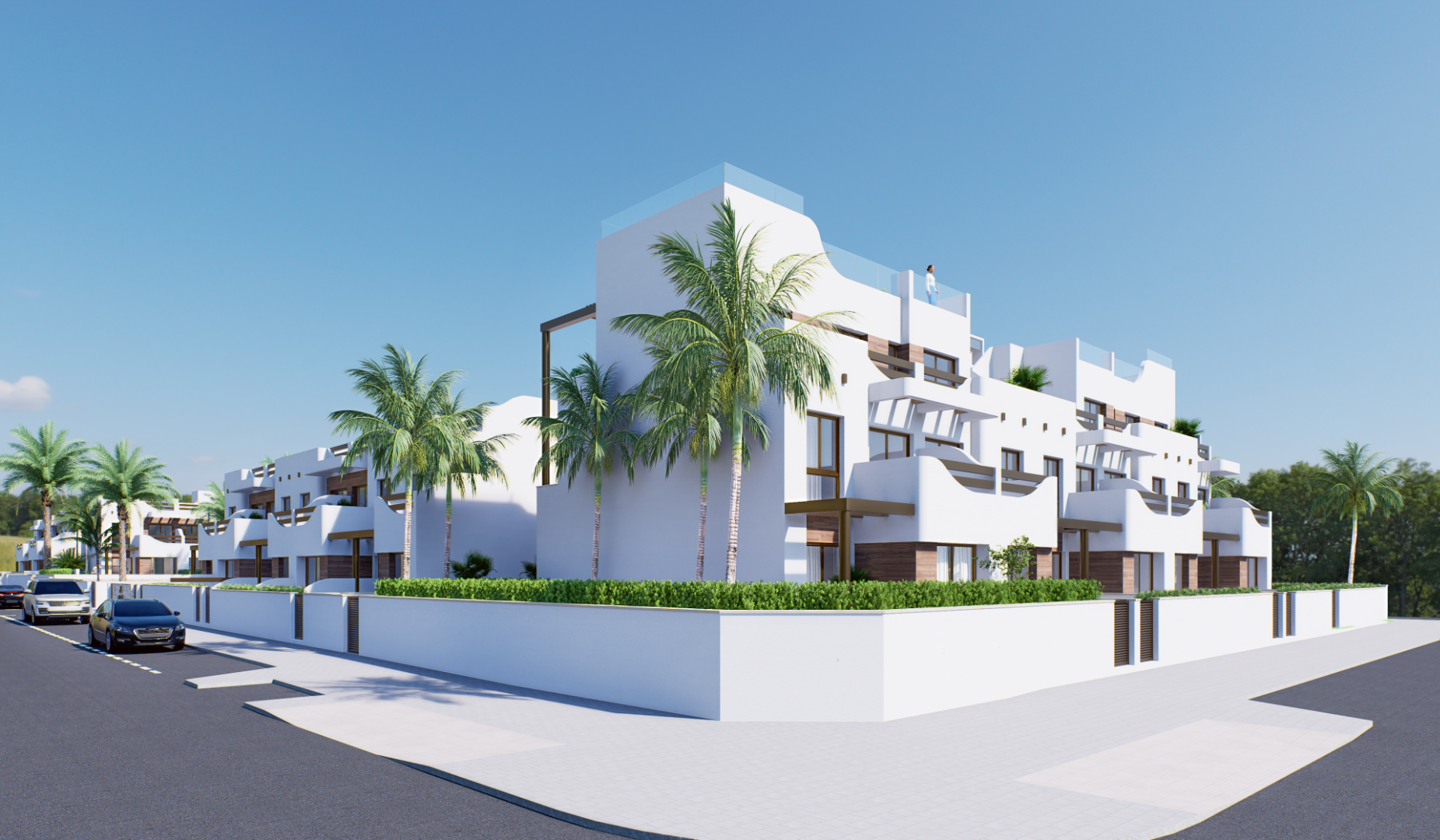Nieuw gebouwde bungalow op de bovenste verdieping, gelegen in Torre de la Horadada, ontworpen om te genieten van maximaal comfort in een bevoorrechte omgeving. De woning heeft twee slaapkamers uitgerust met inbouwkasten, twee complete badkamers en een woon-eetkamer verbonden met een open keuken, waardoor een functionele en gezellige ruimte ontstaat....