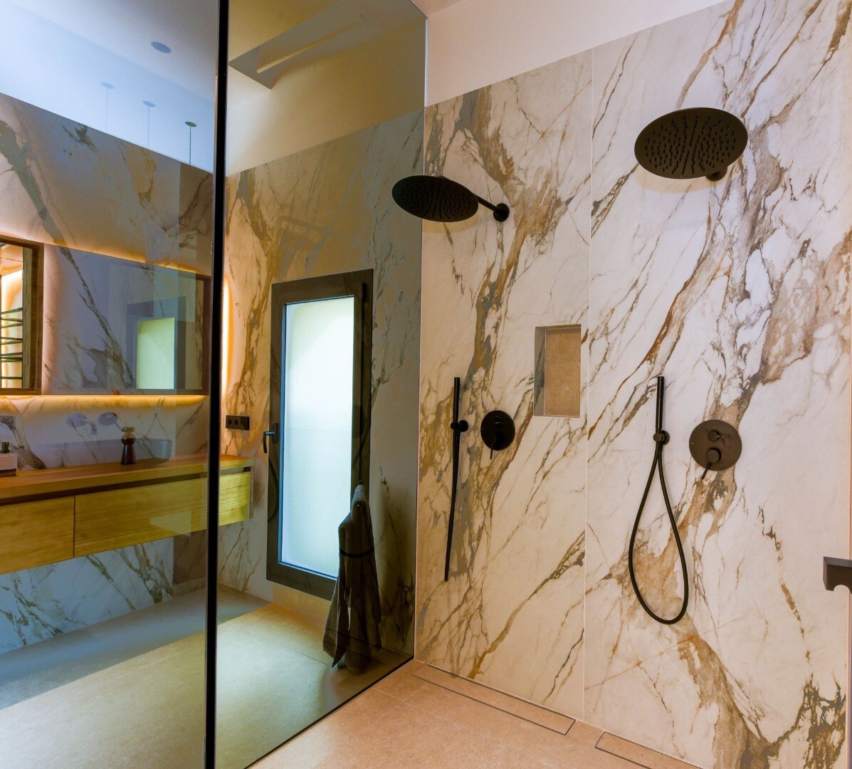 Het zwembad met klimaatbeheersing en een automatische bescherming om de warmte gedurende de hele jaar te behouden en de bescherming van gezinnen met kinderen te verlengen, tot het zwembad een zone van marmoleum-barbecue heeft om de hele jaar door vrij te laten.