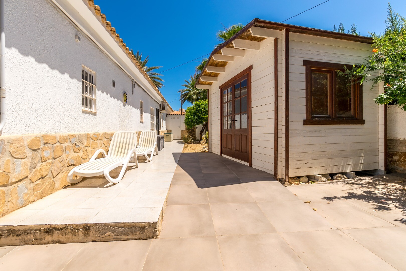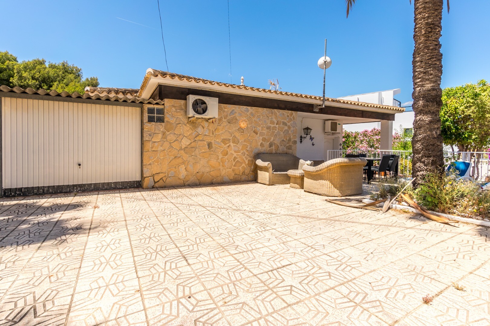 Gelegen op een zonnig perceel van 600 m² op het zuiden in een rustige doodlopende woonstraat, biedt deze uitzonderlijke mediterrane villa privacy, comfort en een ongekende veelzijdigheid, op slechts 900 meter van het strand en 600 meter van winkels, supermarkten en openbaar vervoer.