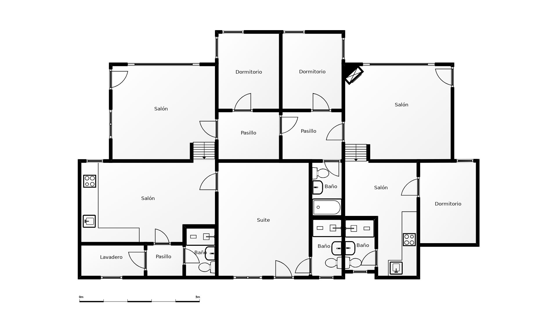 • 4 complete badkamers