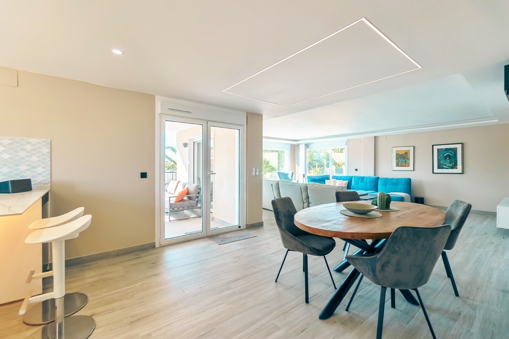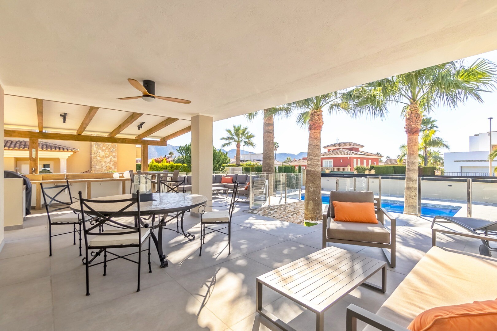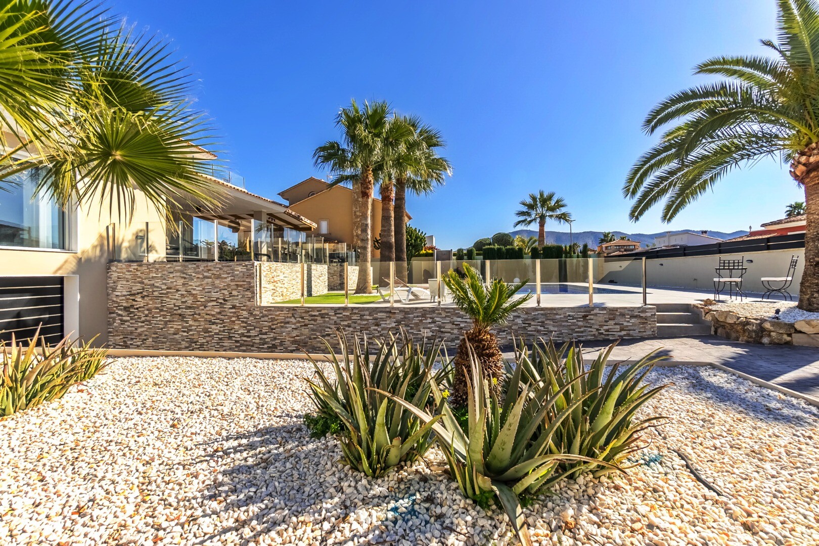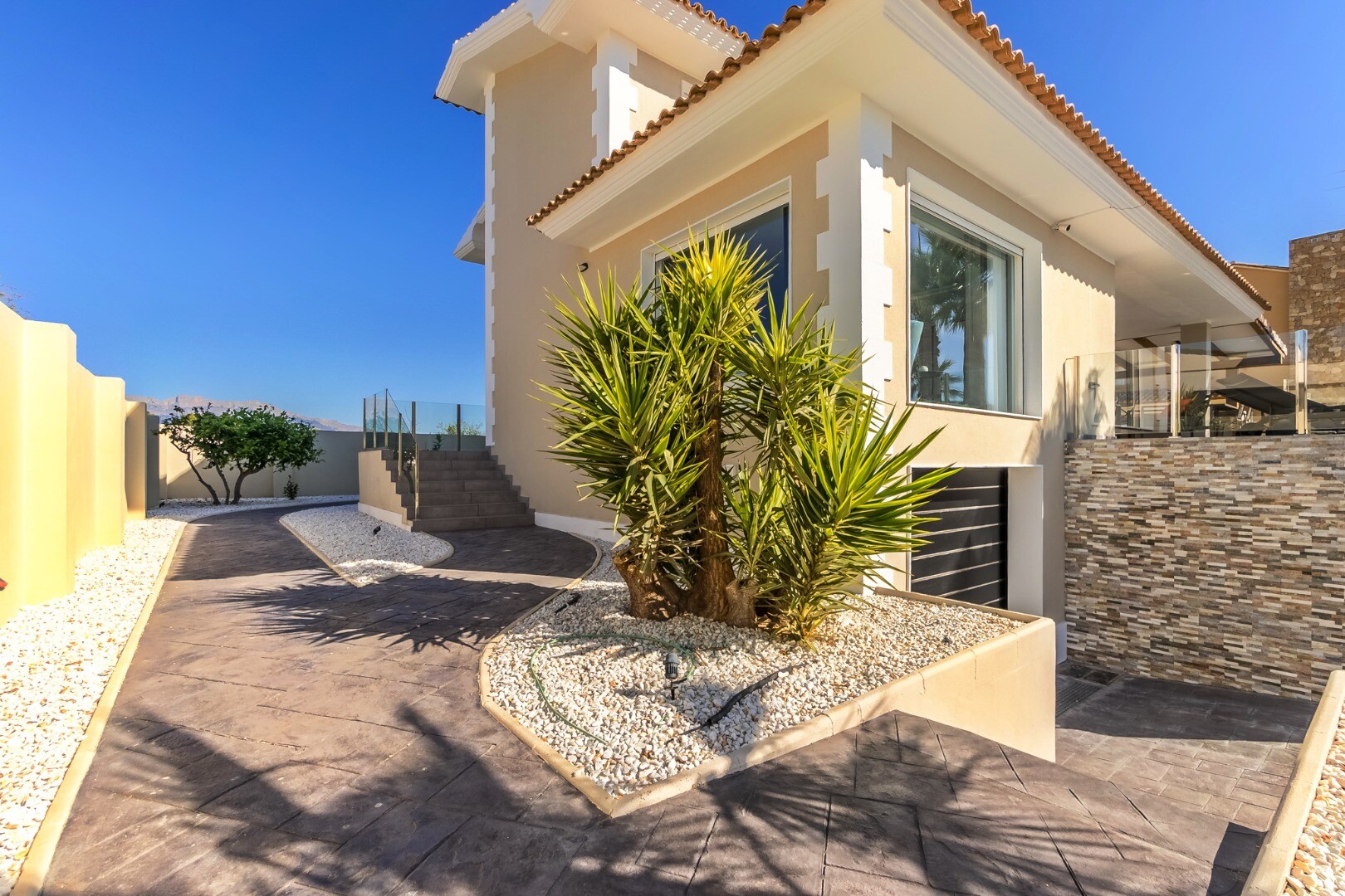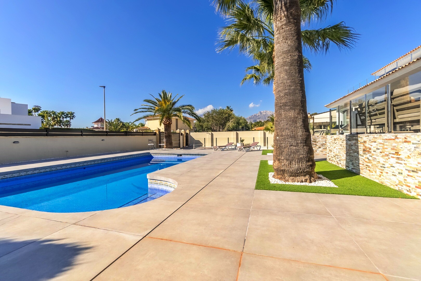 Deze moderne villa van 350 m² is volledig gerenoveerd in 2023 en staat op een privéperceel van 1.250 m² in een rustige woonwijk, op slechts 10 minuten van het strand en 15 minuten van Benidorm. De villa wordt volledig gemeubileerd verkocht en is direct te betrekken.