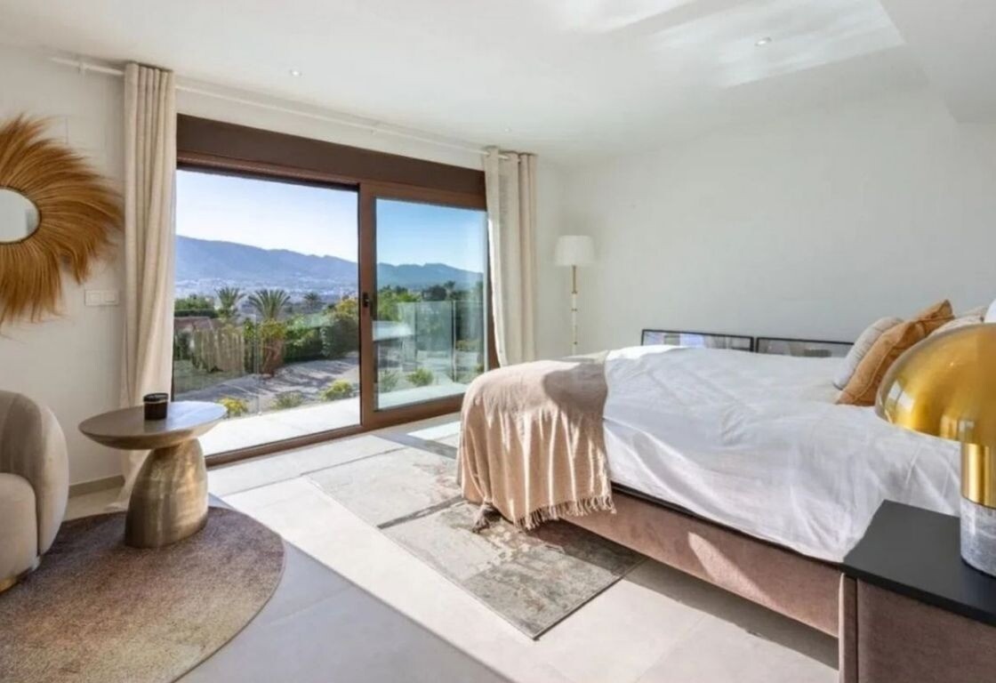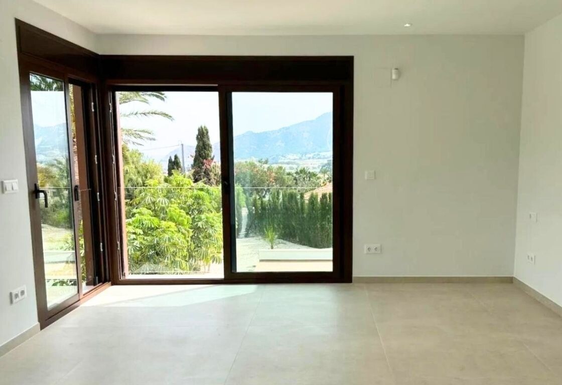 De villa heeft een ruime woonkamer met grote ramen waardoor u kunt genieten van een indrukwekkend uitzicht op de zee en de Sierra Helada.