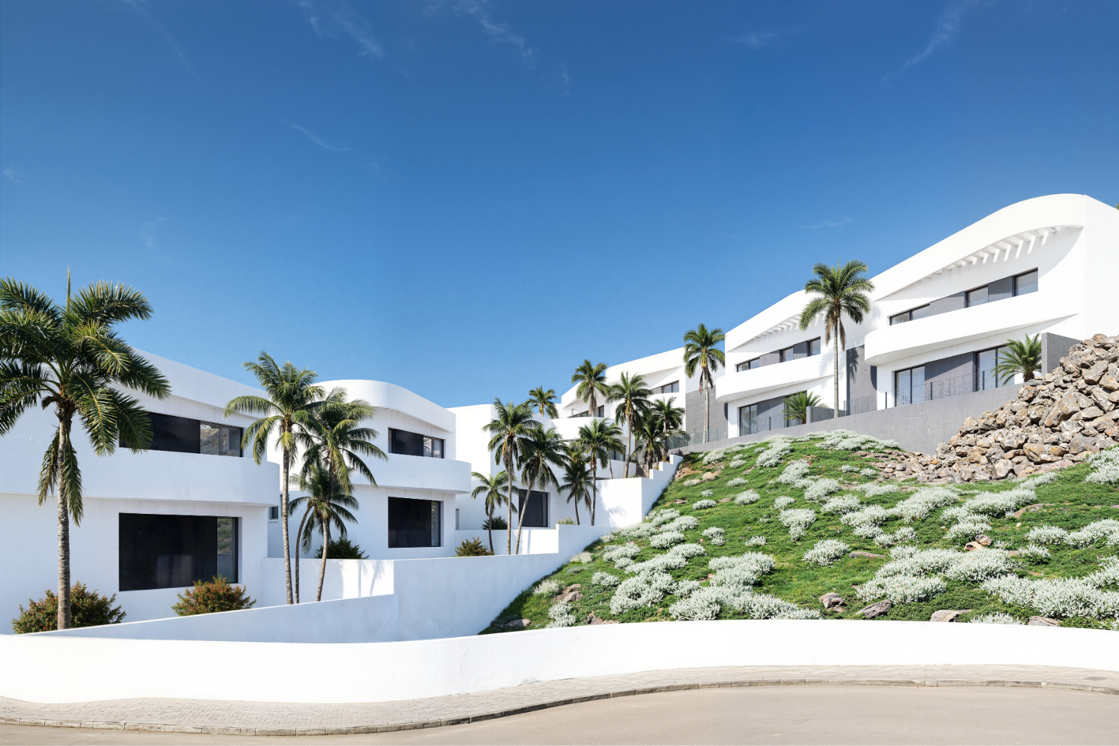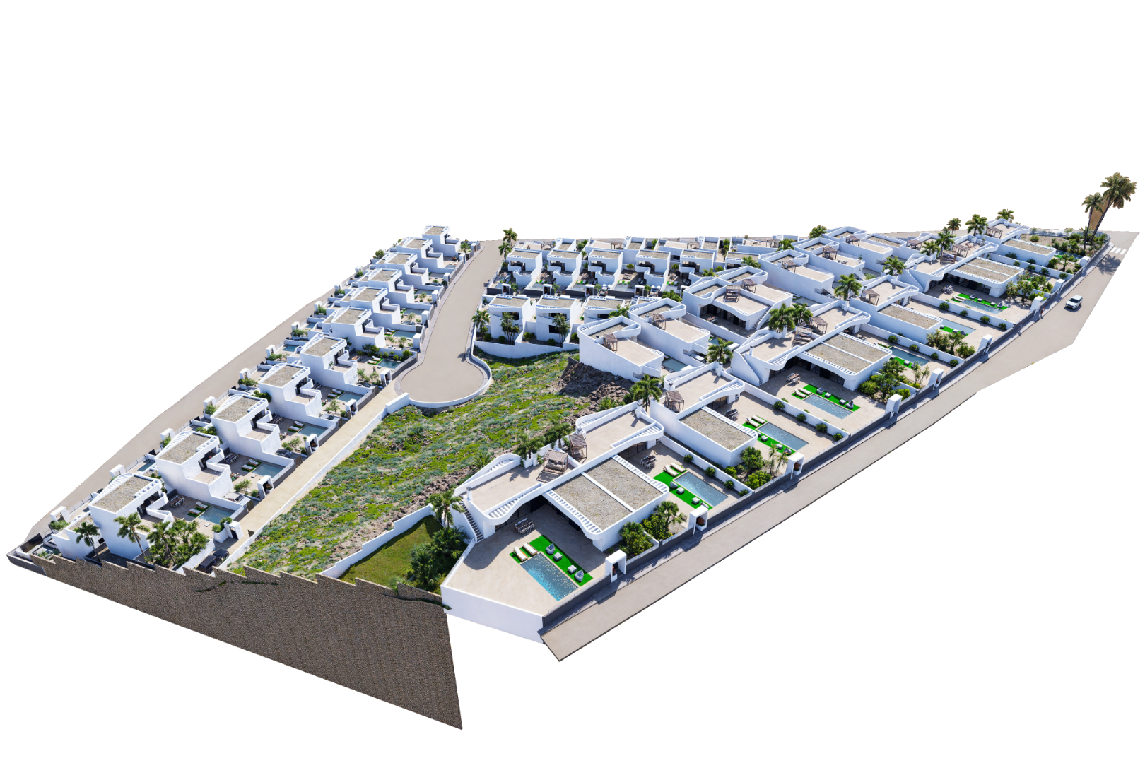Er worden 3 modellen van woningen op verschillende locaties aangeboden. De woningen op een grotere grondstuk hebben een zwembad van 7x3m. De kleinere hebben een zwembad van 6x3m. De woningen op de grotere grondstukken hebben standaard in de prijs reeds een kelderruimte. Bij het meerendeel is dat ooptioneel mogelijk. De woningen hebben een pre-insta...llatie A/C via luchtkanalen.