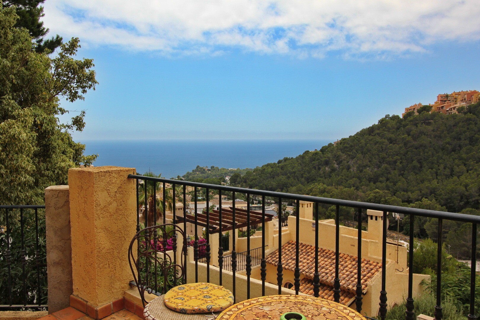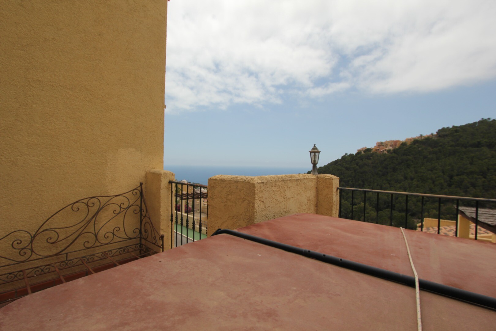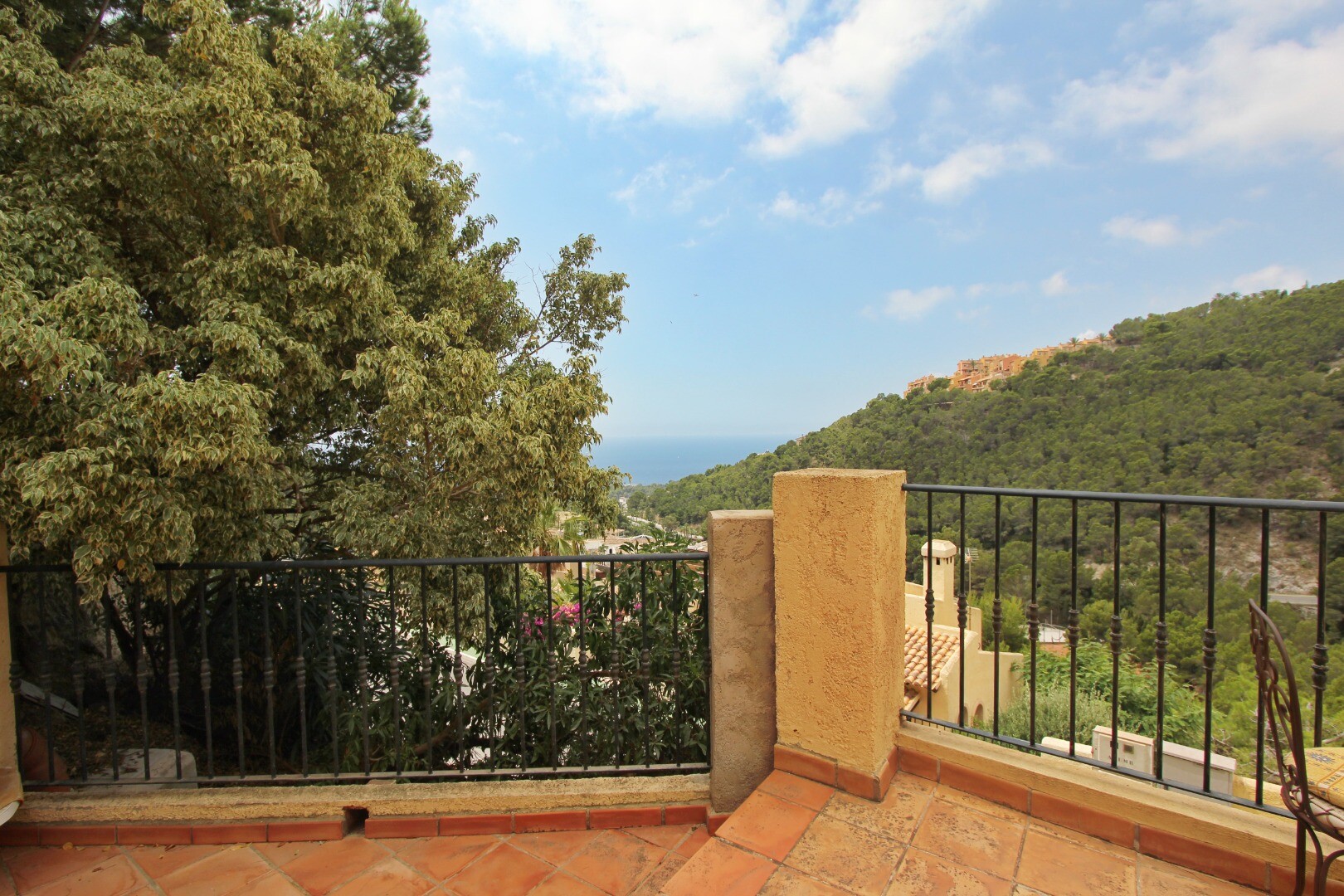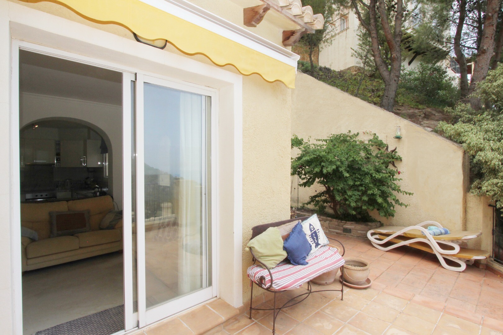 U zult genieten van een prachtig uitzicht op de zee vanaf de terrassen en de jacuzzi in de tuin. Op de begane grond is er een volledi...g gerenoveerde keuken en een grote woon-/eetkamer met directe toegang tot het terras met buiteneethoek, hoofdslaapkamer met en-suite badkamer en gastentoilet. Eerste verdieping zijn er 2 slaapkamers met een gedeelde badkamer en een van de slaapkamers heeft een eigen terras met prachtig uitzicht op de Middellandse Zee. Het pand beschikt over een eigen garage, airconditioning, open haard in de woonkamer, gemeenschappelijk zwembad en wordt volledig gemeubileerd en uitgerust verkocht. Vroegtijdig kijken wordt sterk aanbevolen!