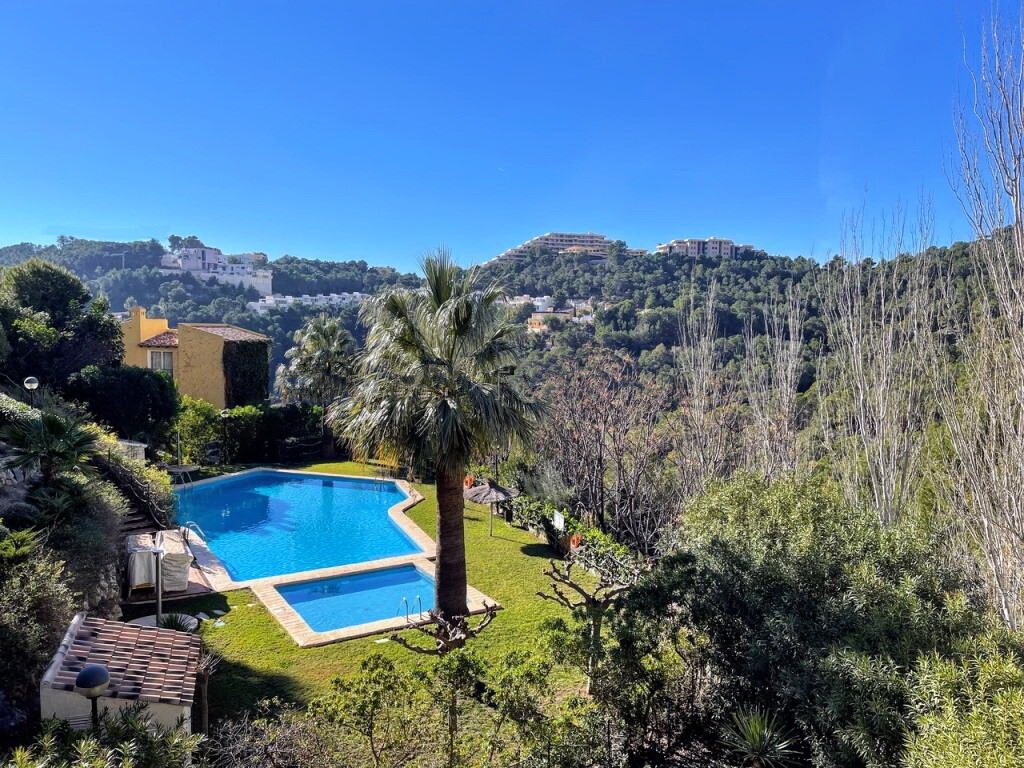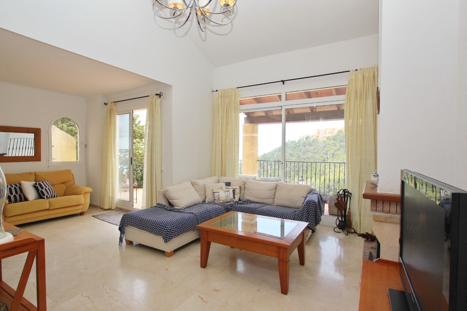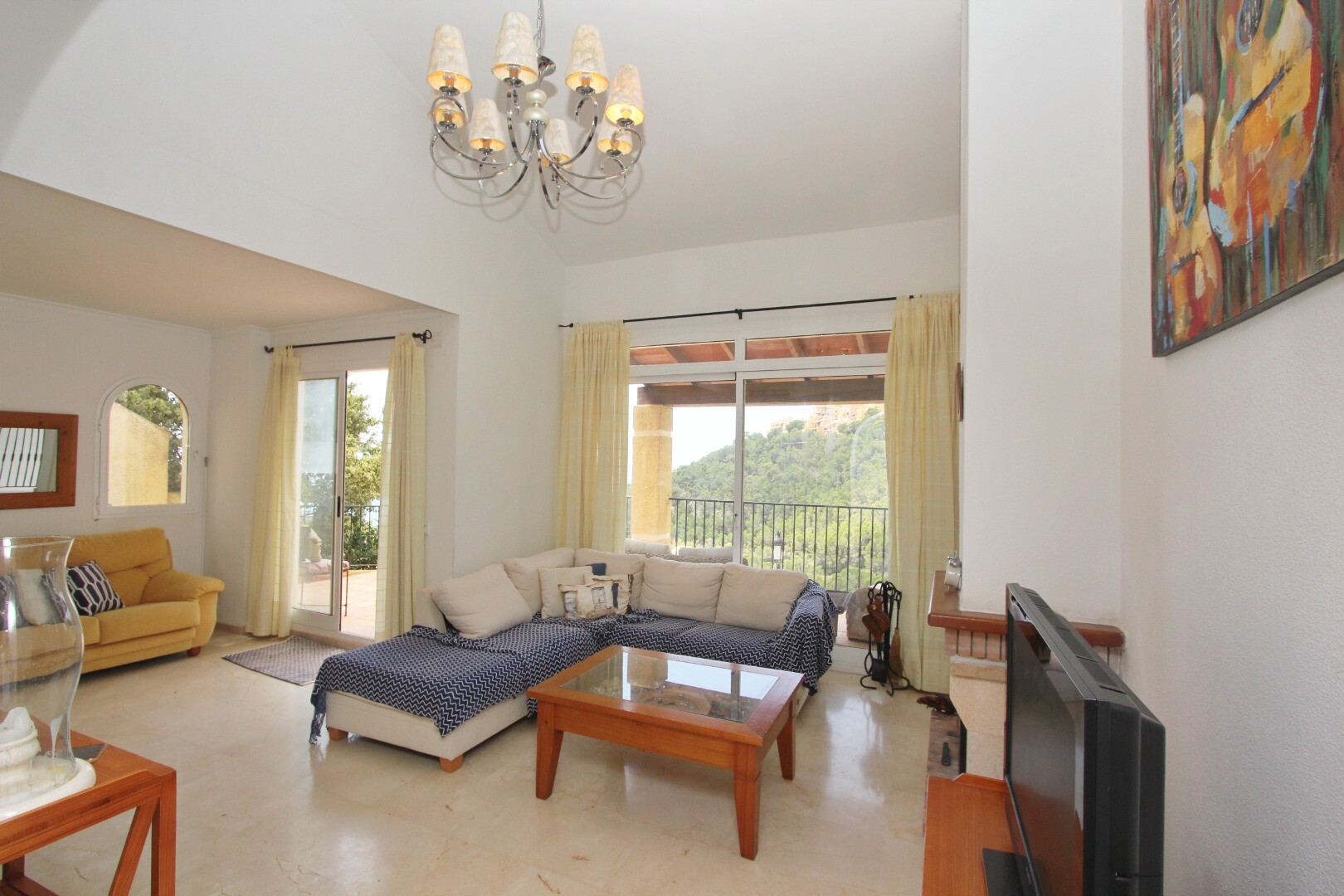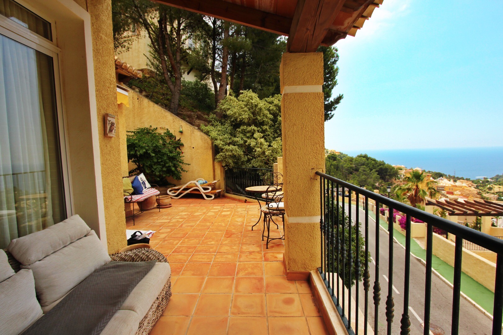 U zult genieten van een prachtig uitzicht op de zee vanaf de terrassen en de jacuzzi in de tuin. Op de begane grond is er een volledi...g gerenoveerde keuken en een grote woon-/eetkamer met directe toegang tot het terras met buiteneethoek, hoofdslaapkamer met en-suite badkamer en gastentoilet. Eerste verdieping zijn er 2 slaapkamers met een gedeelde badkamer en een van de slaapkamers heeft een eigen terras met prachtig uitzicht op de Middellandse Zee. Het pand beschikt over een eigen garage, airconditioning, open haard in de woonkamer, gemeenschappelijk zwembad en wordt volledig gemeubileerd en uitgerust verkocht. Vroegtijdig kijken wordt sterk aanbevolen!