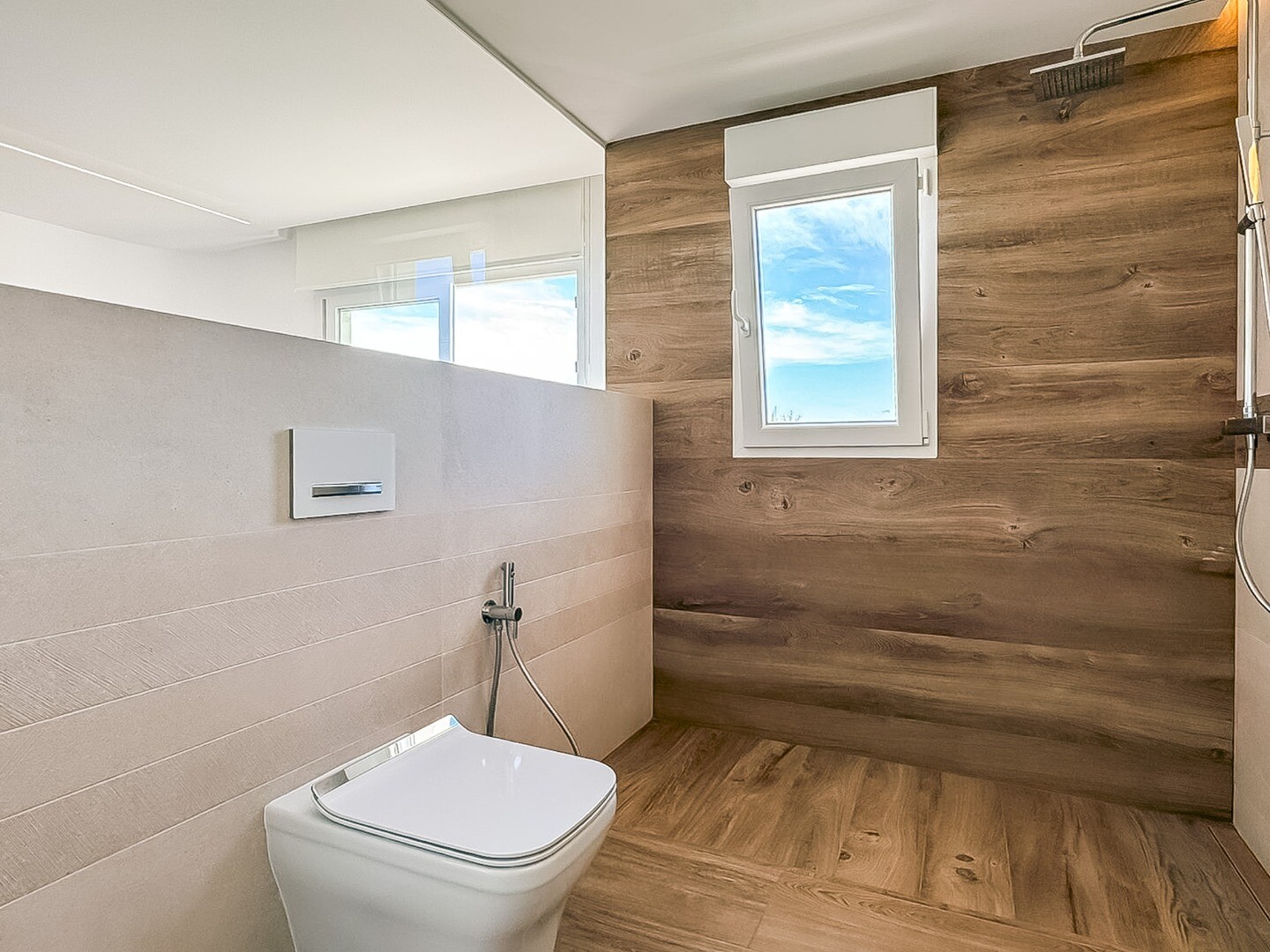 De villa beschikt momenteel over drie elegante slaapkamers met eigen badkamer, elk ontworpen als een privétoevluchtsoord met hoogwaardige afwerking en zorgvuldig afgewogen proporties. Er is nog 40 m² extra ruimte op de bovenverdieping beschikbaar voor afwerking, waardoor de mogelijkheid ontstaat om een vierde suite, wellnessruimte, privégym, studio of directiekantoor te creëren. Zo kan de toekomstige eigenaar de woning volledig naar eigen wens inrichten.