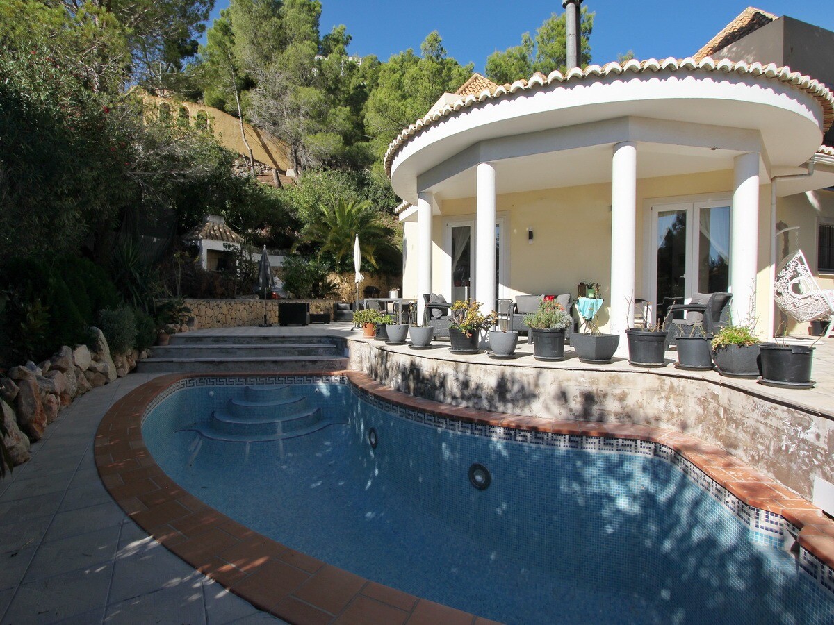 Familievilla in de gewilde wijk Santa Clara. Prive zwembad, airco, open haard, zonnepanelen, beveiligde privé parkeerplaats...Zeer privé en afgelegen zijn echter slechts 5 minuten rijden naar de dorpen Altea la Vella en Altea.