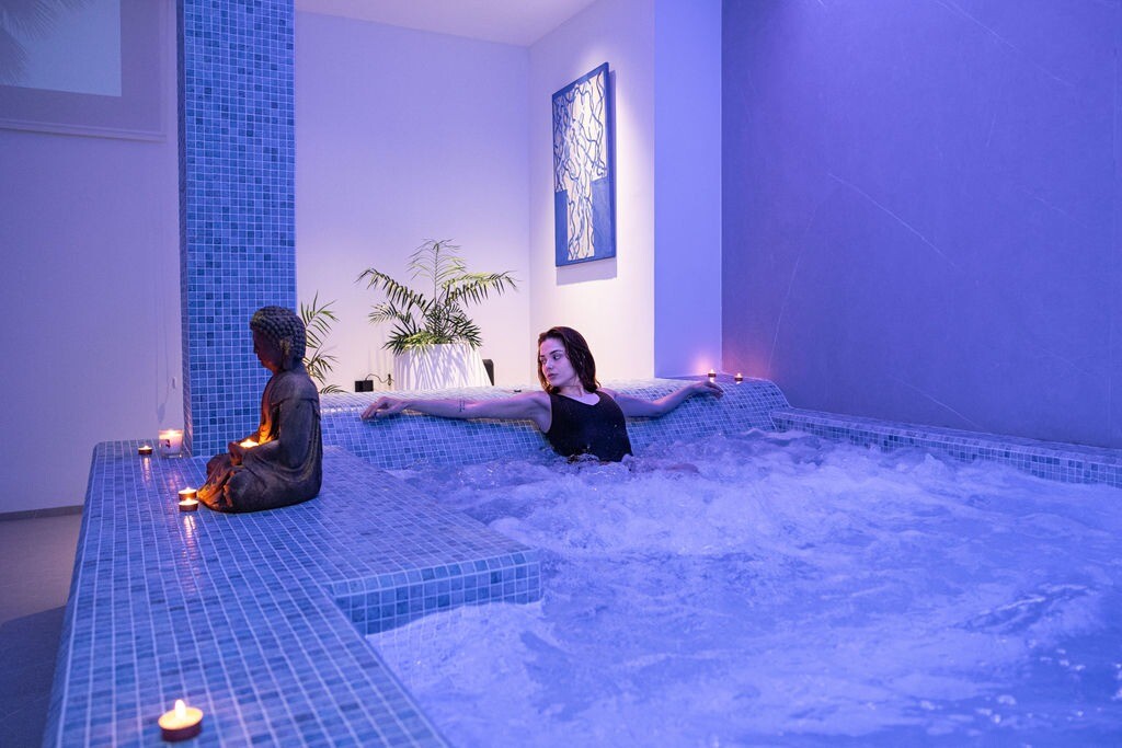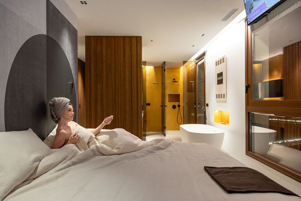 Een van de meest kenmerkende elementen is de focus op welzijn: de villa beschikt over een privéspa met een verwarmd zwembad, sauna en ontspanningsruimte, evenals een buiten infinity pool die visueel overgaat in de zee.