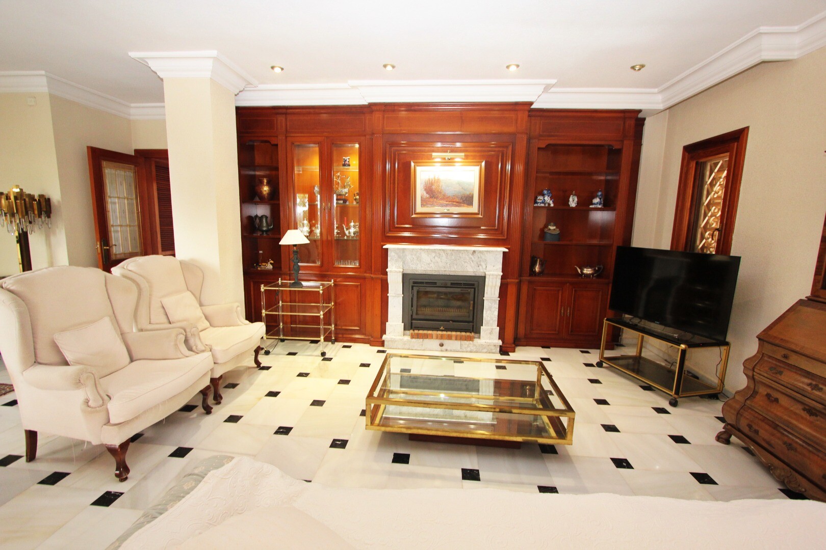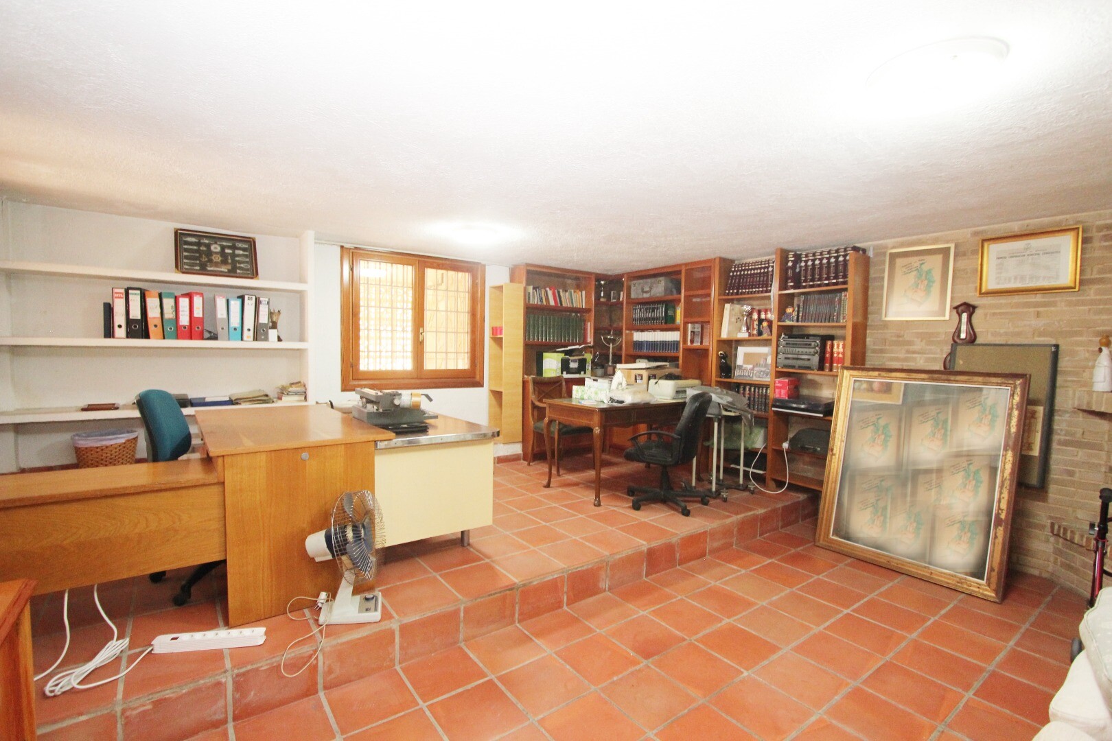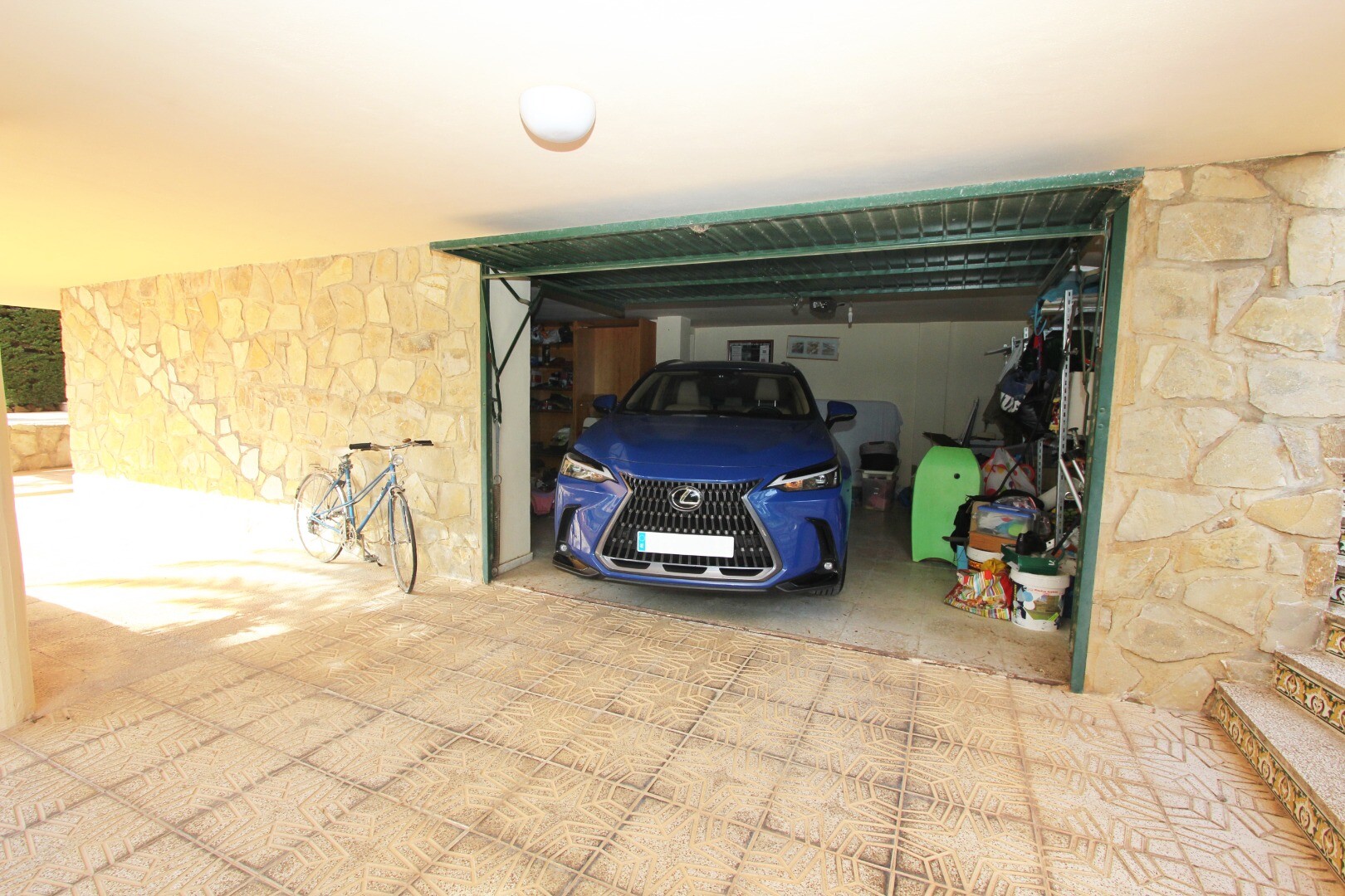 Er is een privégarage op de benedenverdieping, samen met een toilet, grote bibliotheek/slaapkamer met open haard.