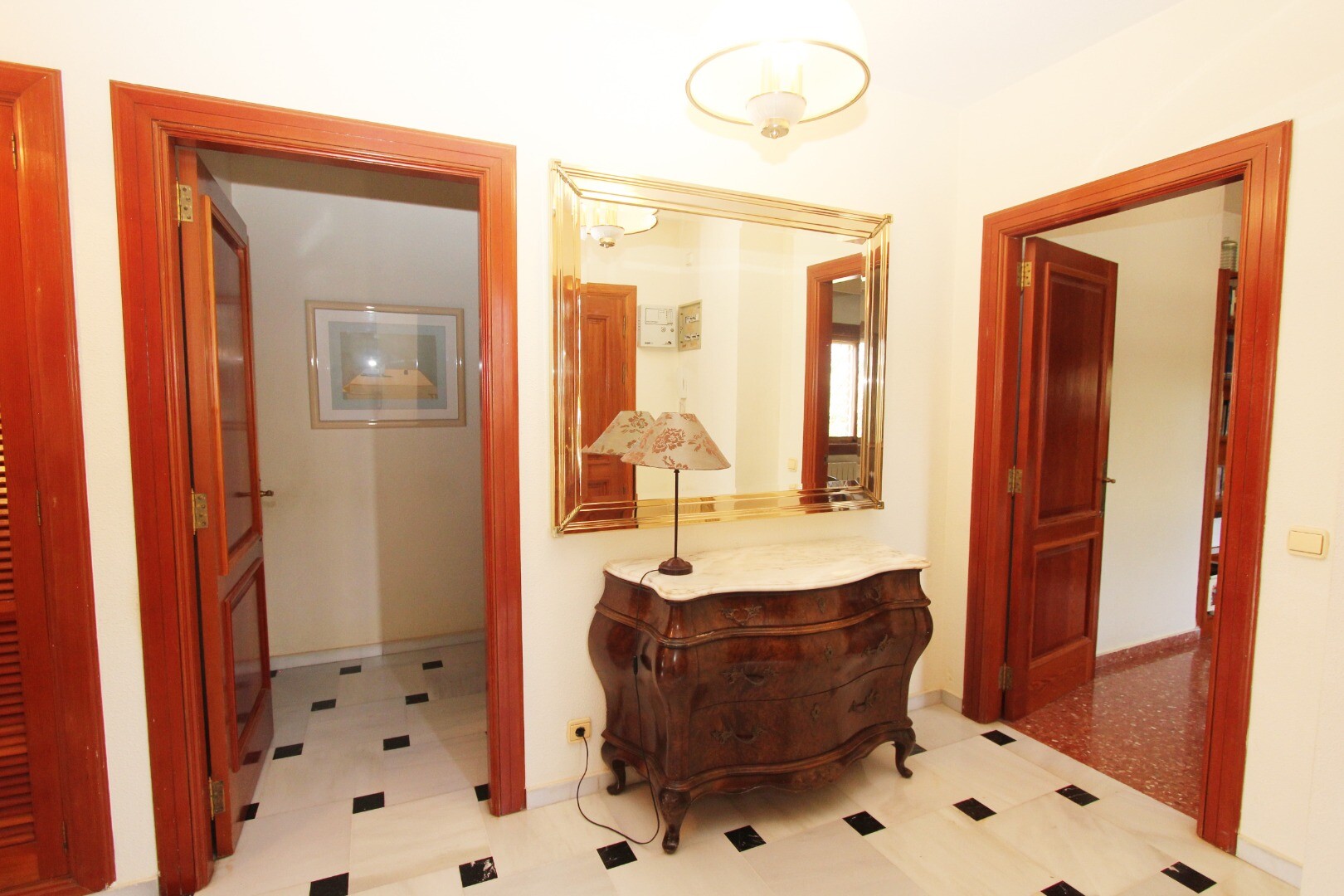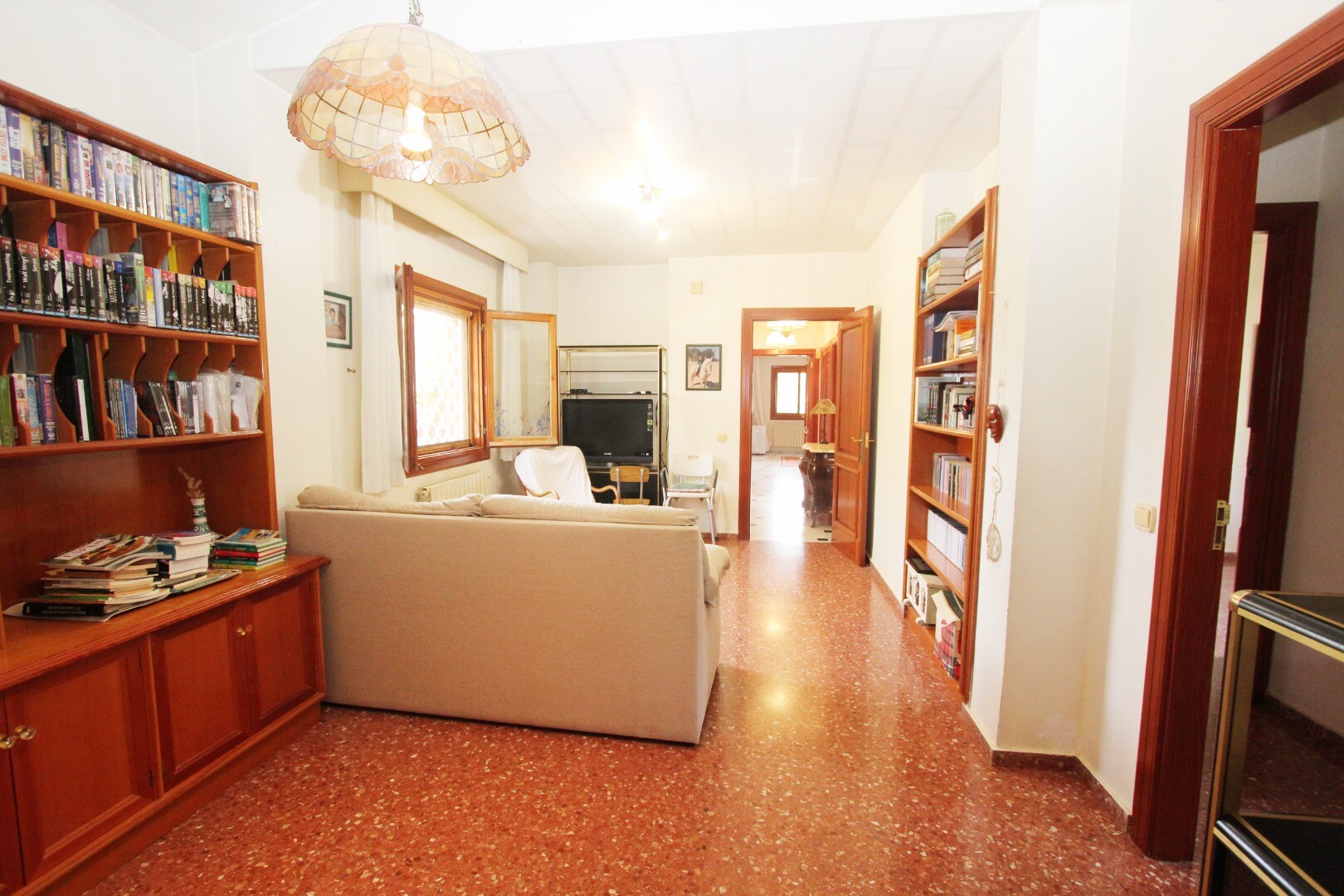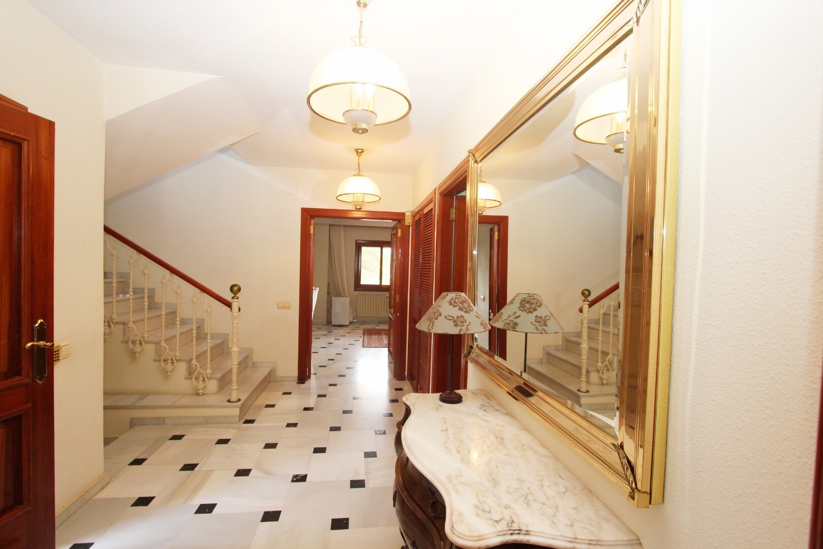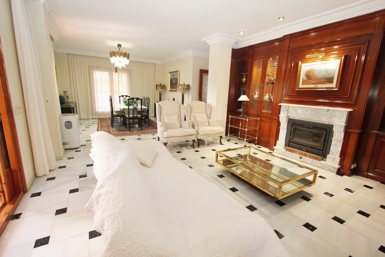 Er is een privégarage op de benedenverdieping, samen met een toilet, grote bibliotheek/slaapkamer met open haard.
