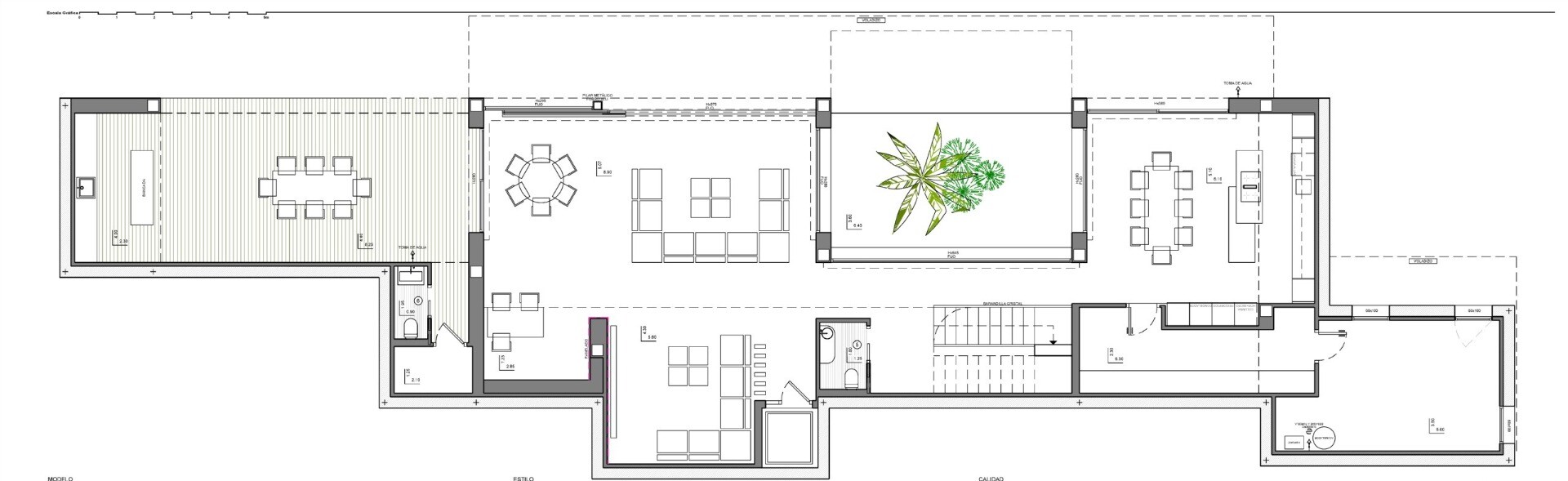 Buiten zorgen aangelegde tuinen en diverse overdekte terrassen ervoor dat men het hele jaar door kan genieten van het klimaat van de Costa Blanca – ideaal voor het ontvangen van gasten, zonsondergangen of ontspannende momenten bij het overloopzwembad met uitzicht op zee.