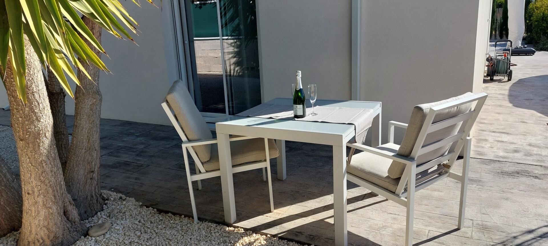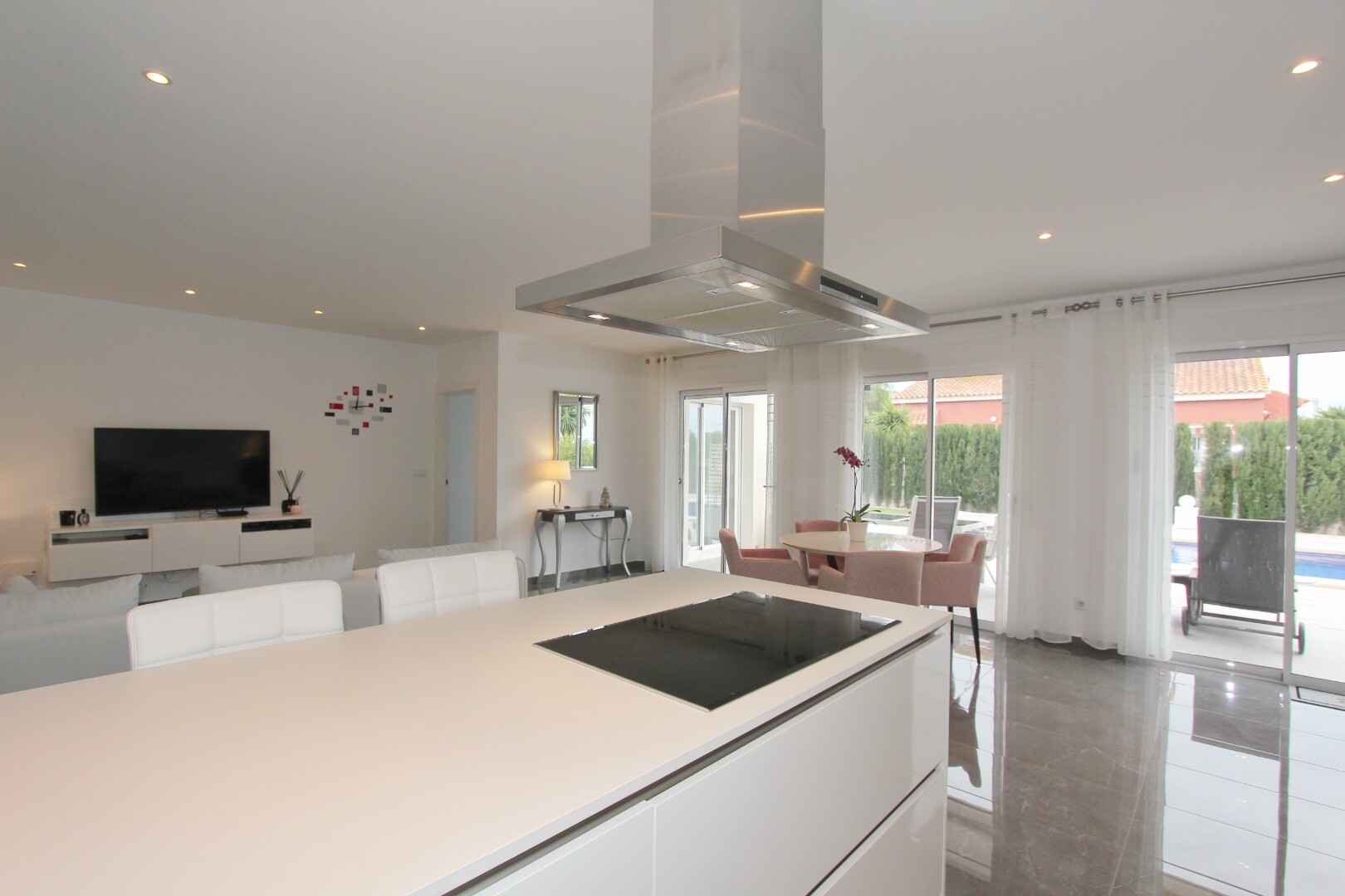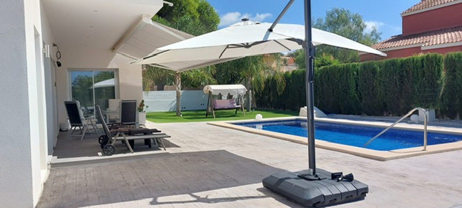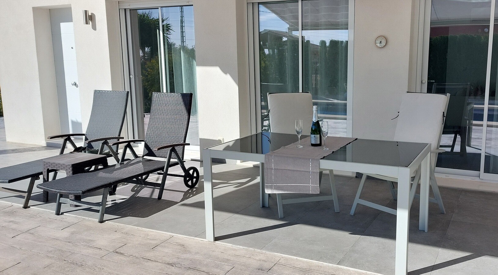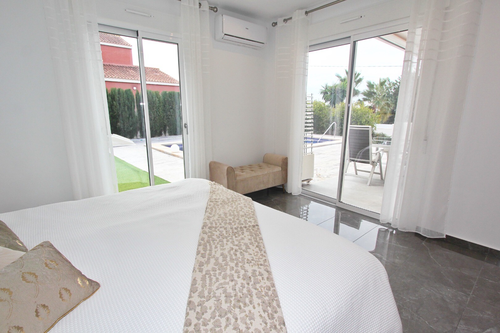 Welkom in uw landelijke toevluchtsoord! Deze stijlvolle villa op één niveau heeft strakke moderne afwerkingen en een overvloed aan natuurlijk licht dat door de royale ramen van vloer tot plafond danst. Geniet van de gastronomische keuken, een toevluchtsoord voor ambitieuze chef-koks, en geniet van uw ochtendkoffie op het privéterras bij het zwembad..., waar u uitzicht hebt over de tuin en het zwembad. Deze privévilla ligt in een landelijk gehucht en is uw toegangspoort tot een rustige levensstijl, omringd door uw eigen ruime tuin met weelderige vegetatie en fruitbomen, een ideale plek om 'al fresco' te dineren of cocktails te drinken bij het zwembad! De stad Mutxamel ligt op slechts 7 minuten rijden en het strand op 10 minuten. Mutxamel en Busot hebben een bruisende 'Spaanse dorps'-sfeer en beschikken over veel lokale ambachtelijke winkels, merksupermarkten en wekelijkse groente- en fruitmarkten!
