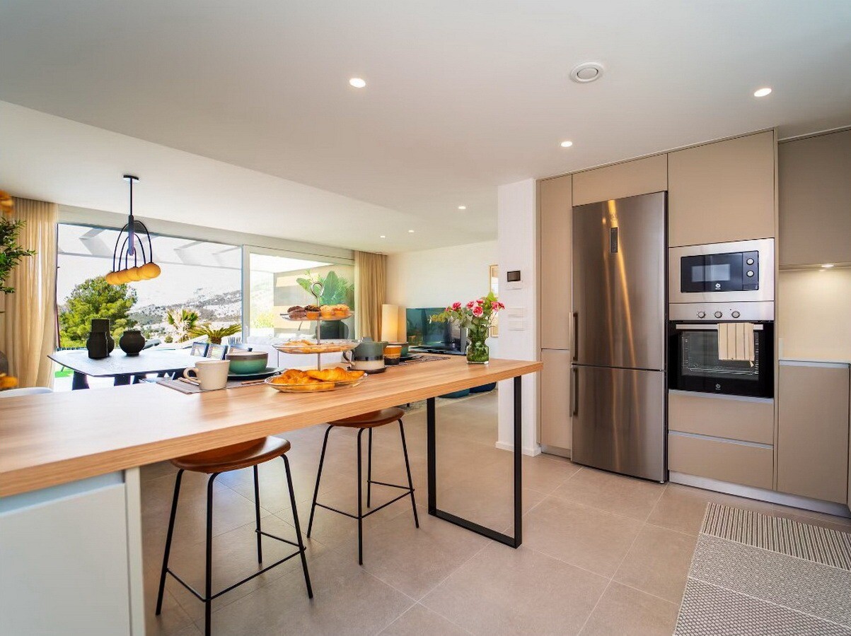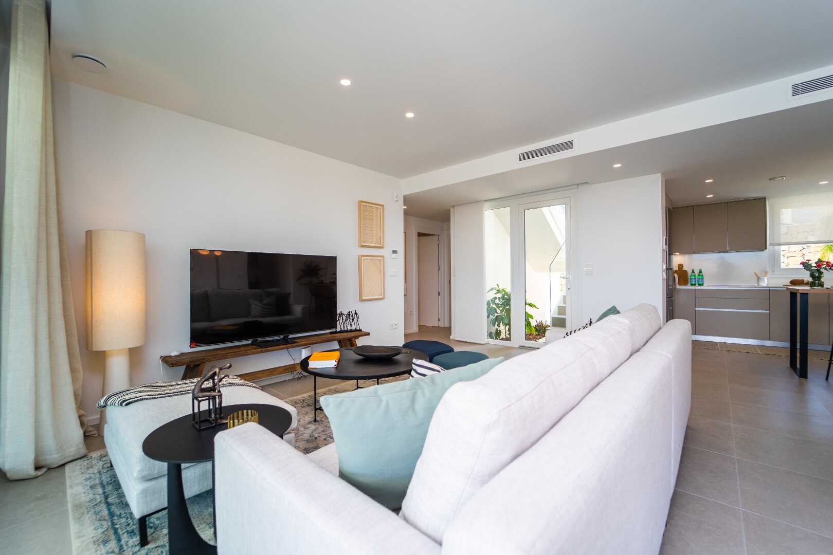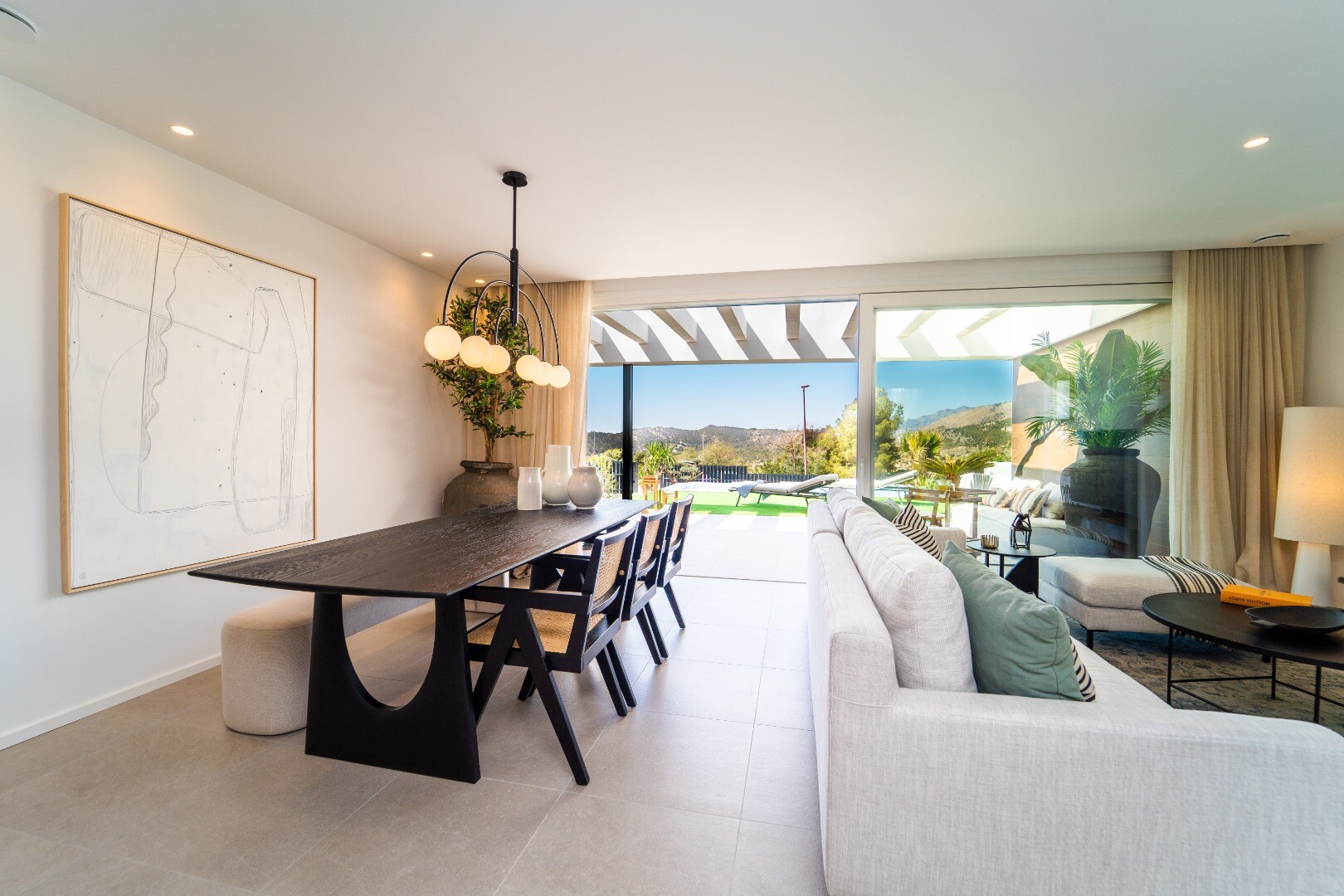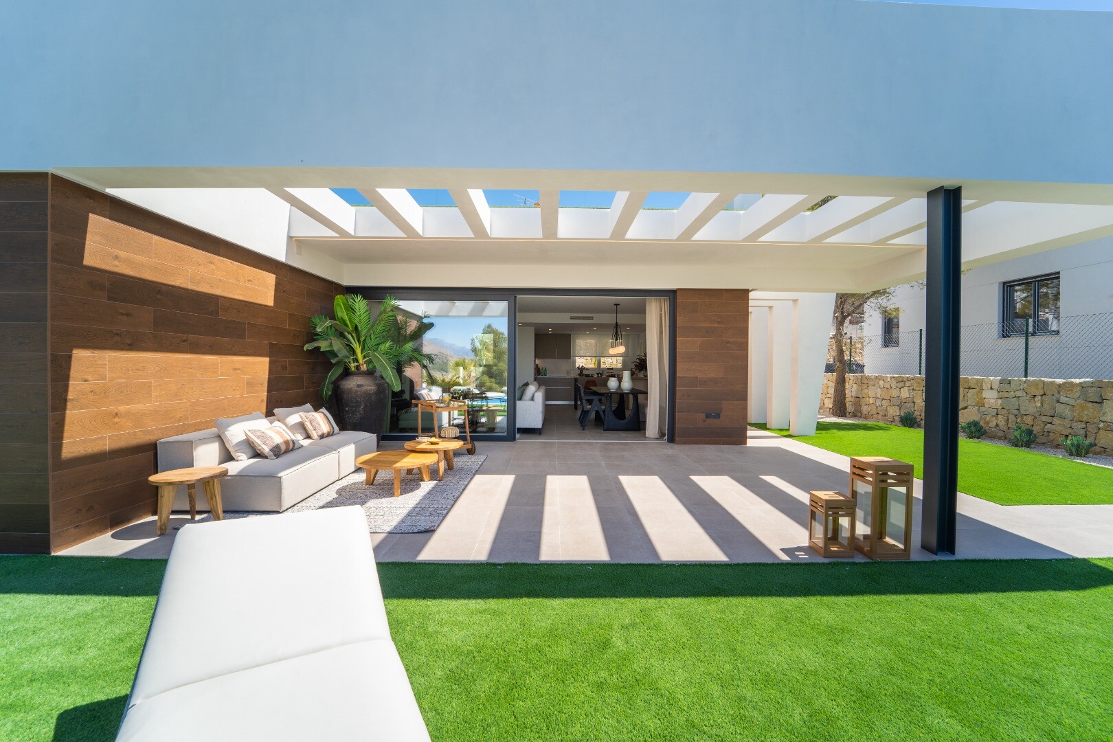 Dankzij de grote ramen zorgt de binnen-...buitenverbinding ervoor dat de huizen zich integreren in de omgeving en kunt u genieten van het mediterrane landschap door simpelweg de deuren van de terrassen te openen.