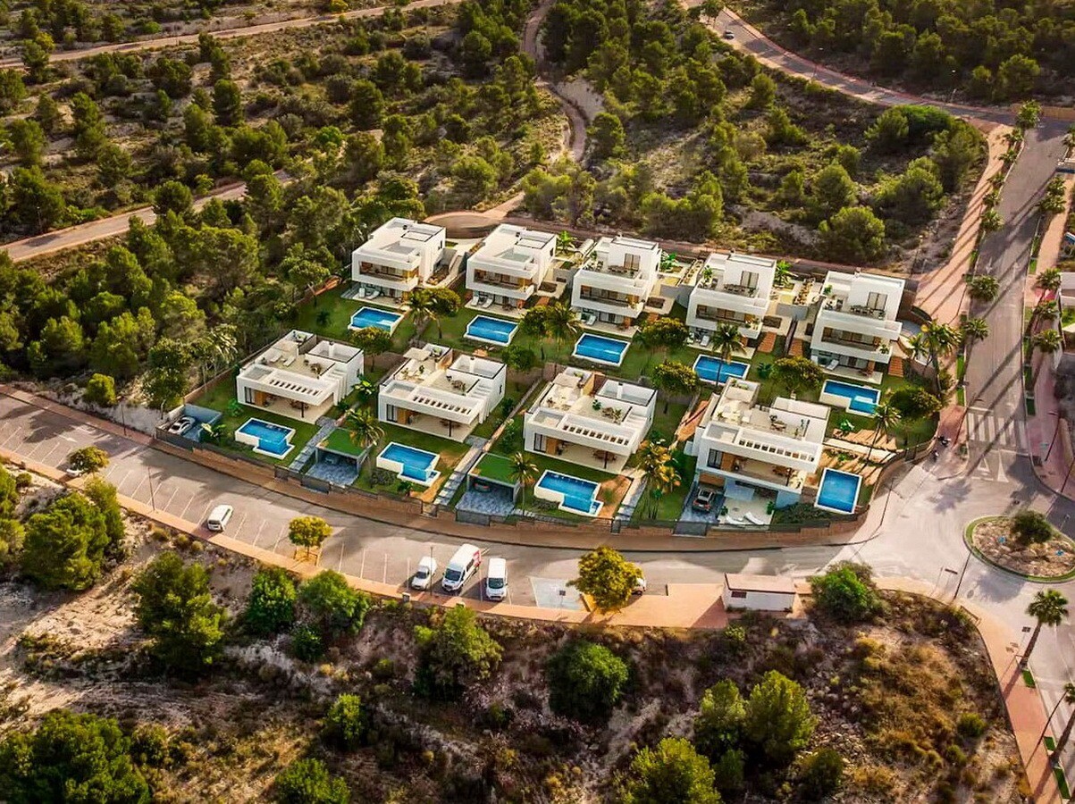 Gelegen aan de Costa Blanca, zijn er 9 onafhankelijke villa's van 2 verdiepingen met hetzelfde ontwerp en comfort, met een doorschijnende verdeling en extreme details. Ze hebben 3 slaapkamers -waarvan één op de begane grond- en 3 badkamers, evenals een privétuin en zwembad en een grote garage voor 2 plaatsen.