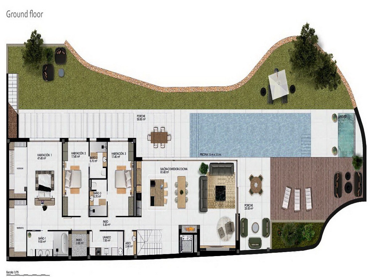 Een complex van 11 unieke en verschillende villa's, met onafhankelijke percelen tot 622 m2, een totale bebouwde oppervlakte van maar liefst 422 m2 en een privézwembad.