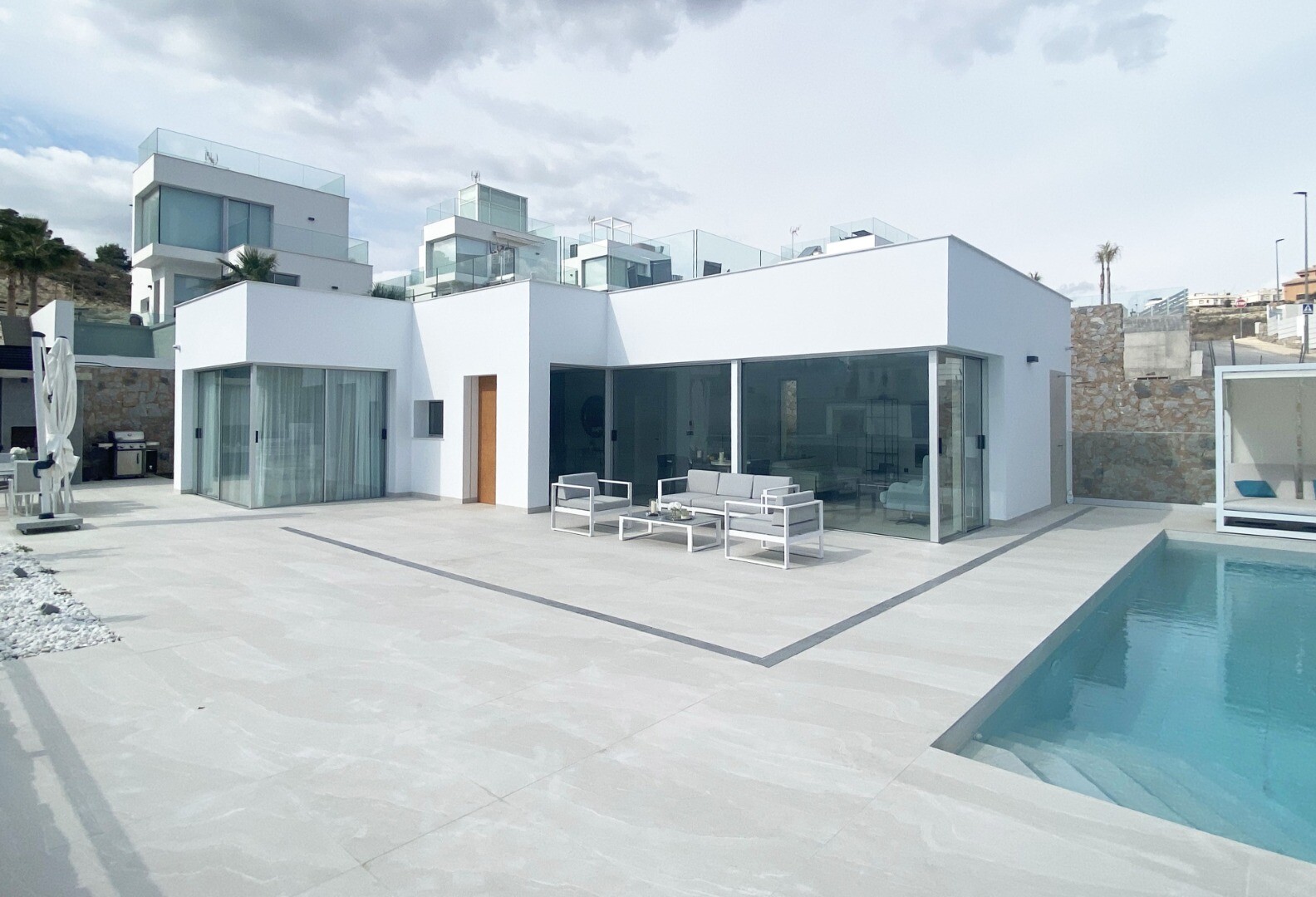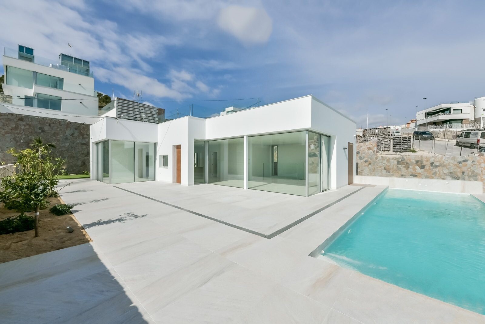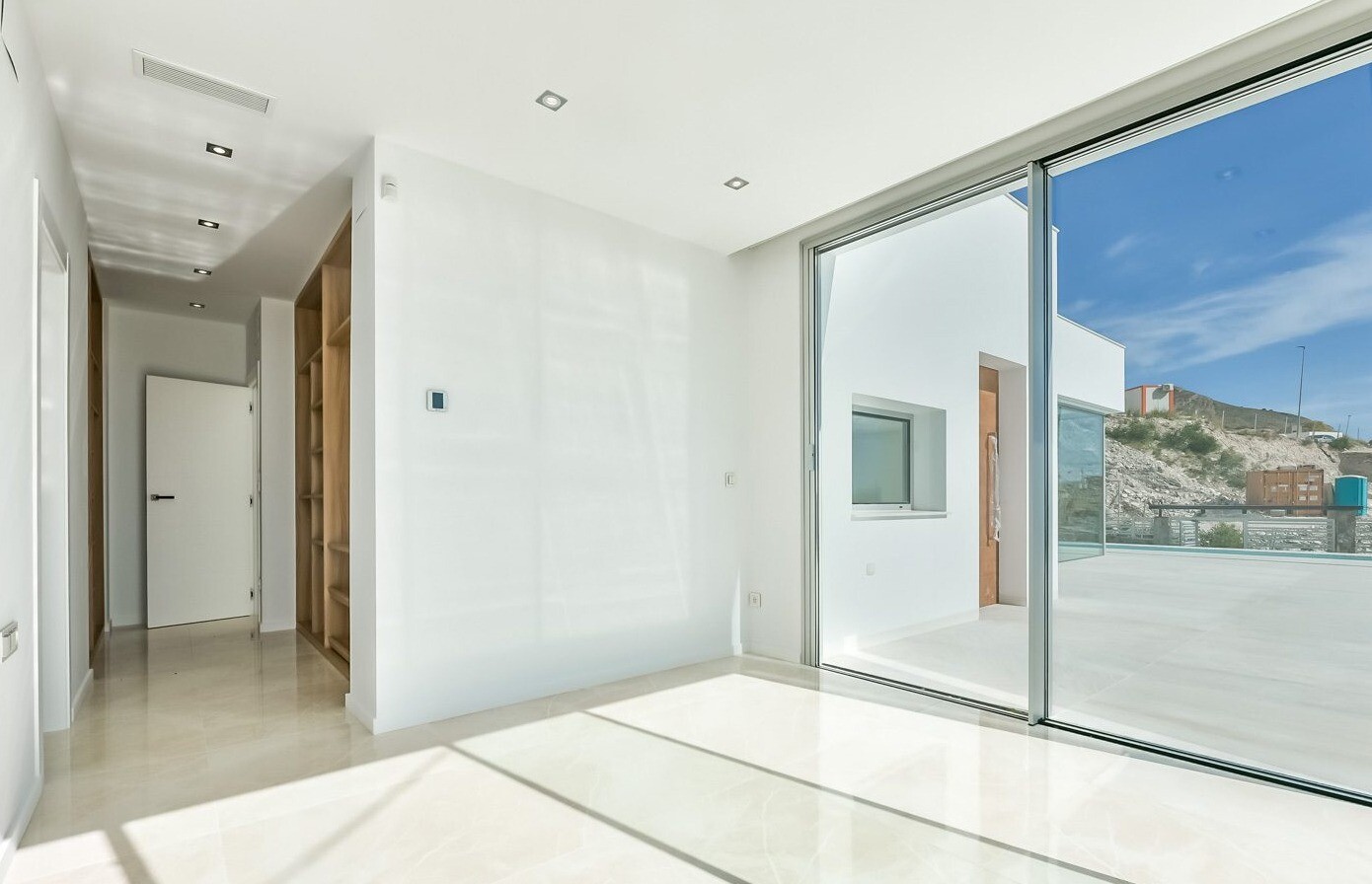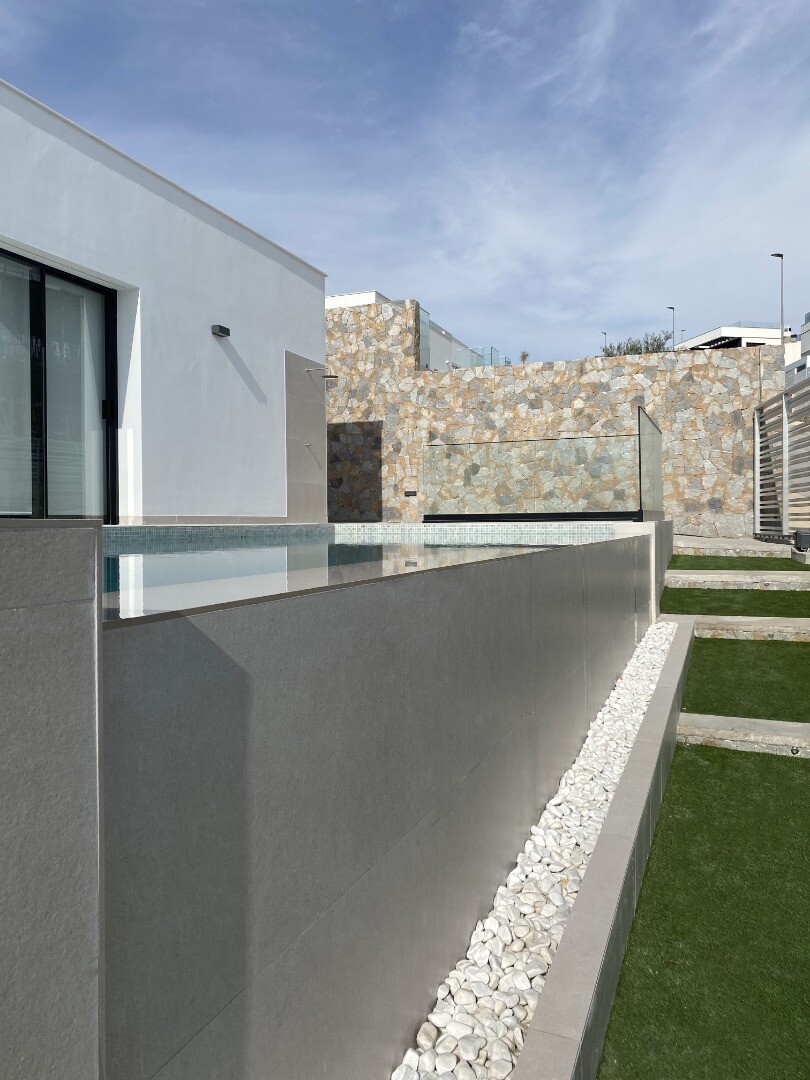 Bevoorrechte omgeving en op slechts 5 km van de zee. Project dat uitzicht op zee, licht en een bijzonder ontwerp combineert op basis van rechte lijnen, felgekleurde afwerkingen en grote ramen. Villa type P-2: Het souterrain is verdeeld in 2 slaapkamers, 1 badkamer en een multifunctionele ruimte (woonkamer, bioscoop, fitnessruimte) De begane grond b...estaat uit een woonkeuken van ca. 44 m2. met toegang tot terras, 3 slaapkamers en 2 badkamers (1 en suite). Het bevat ook een zwembad, een tuin met bomen, een tuinhuisje en parkeergelegenheid voor 2 auto's.