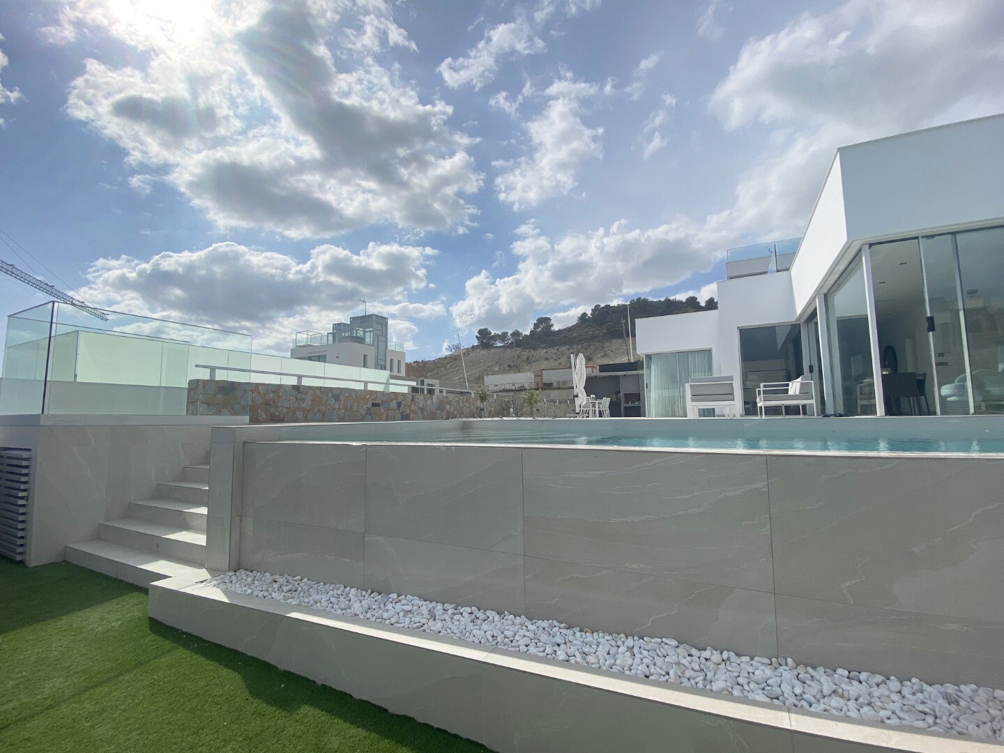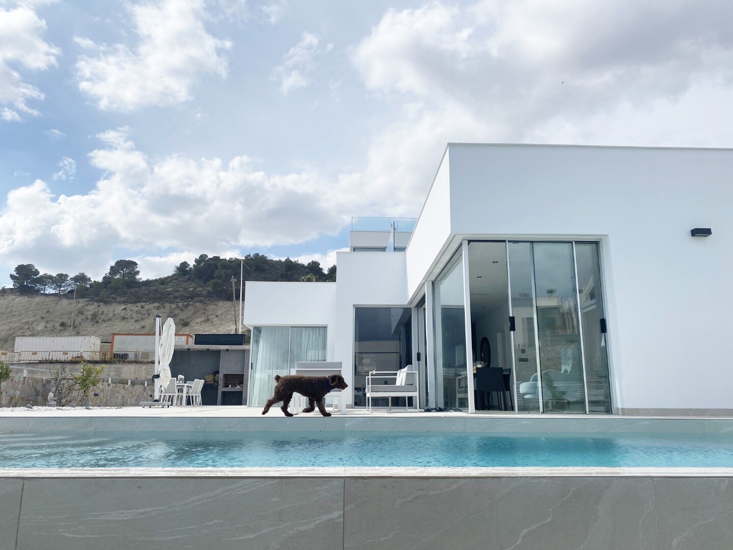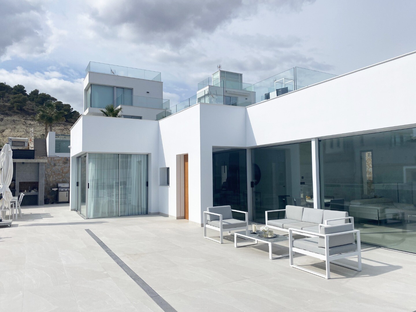 Bevoorrechte omgeving en op slechts 5 km van de zee. Project dat uitzicht op zee, licht en een bijzonder ontwerp combineert op basis van rechte lijnen, felgekleurde afwerkingen en grote ramen. Villa type P-2: Het souterrain is verdeeld in 2 slaapkamers, 1 badkamer en een multifunctionele ruimte (woonkamer, bioscoop, fitnessruimte) De begane grond b...estaat uit een woonkeuken van ca. 44 m2. met toegang tot terras, 3 slaapkamers en 2 badkamers (1 en suite). Het bevat ook een zwembad, een tuin met bomen, een tuinhuisje en parkeergelegenheid voor 2 auto's.