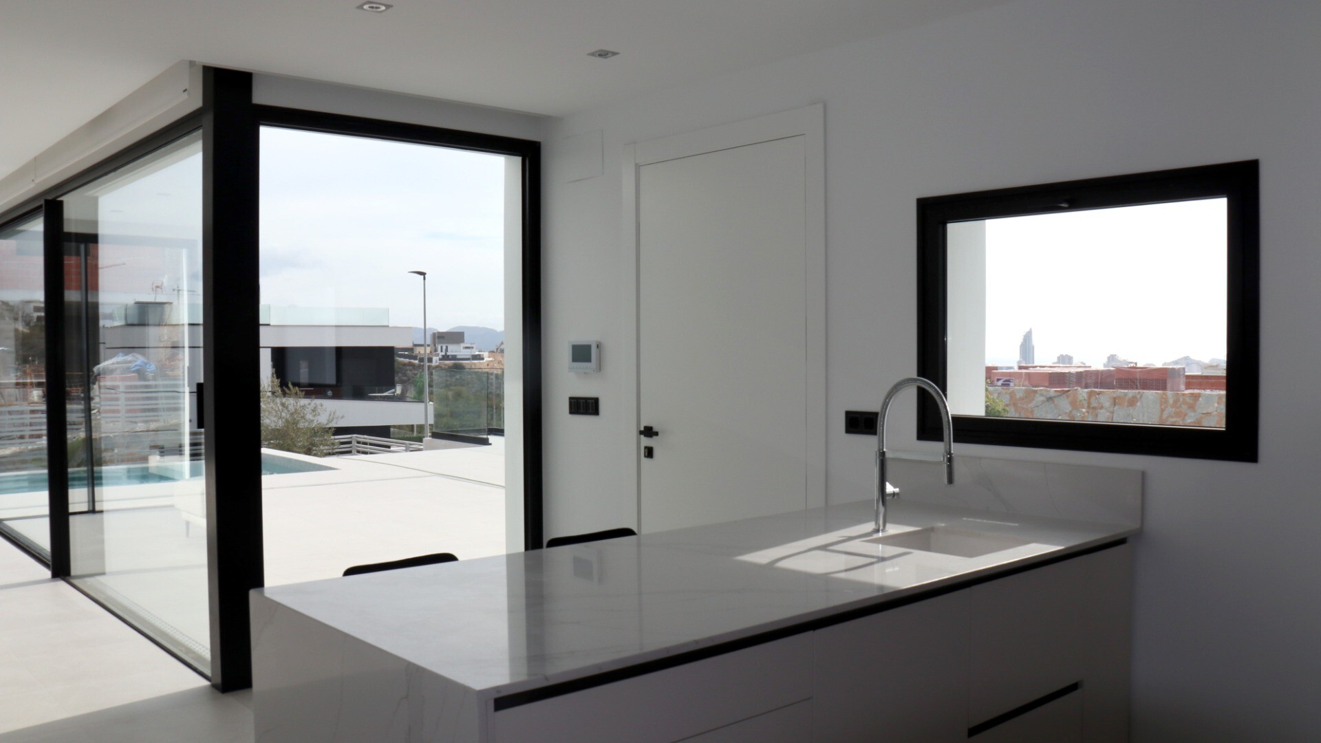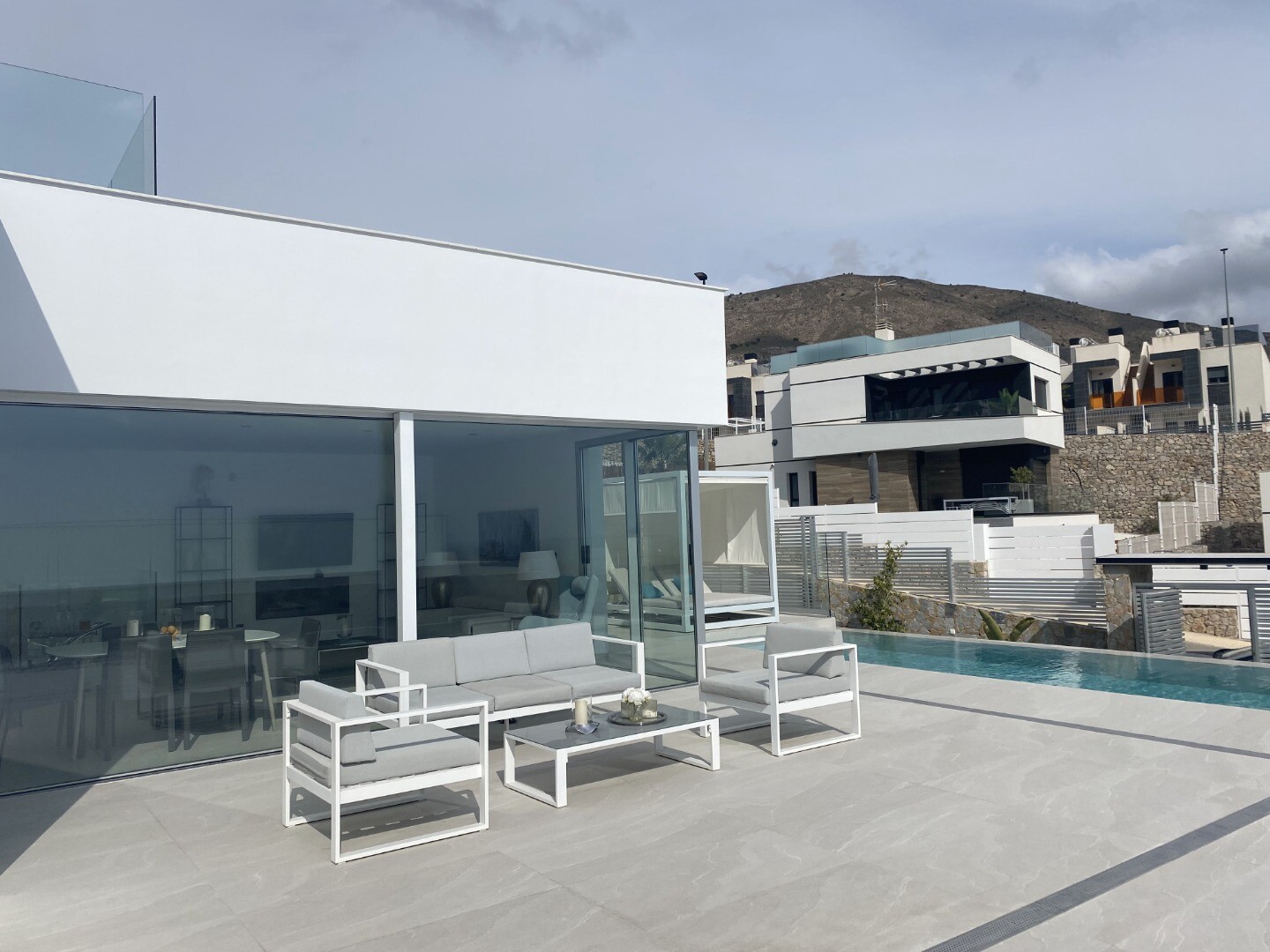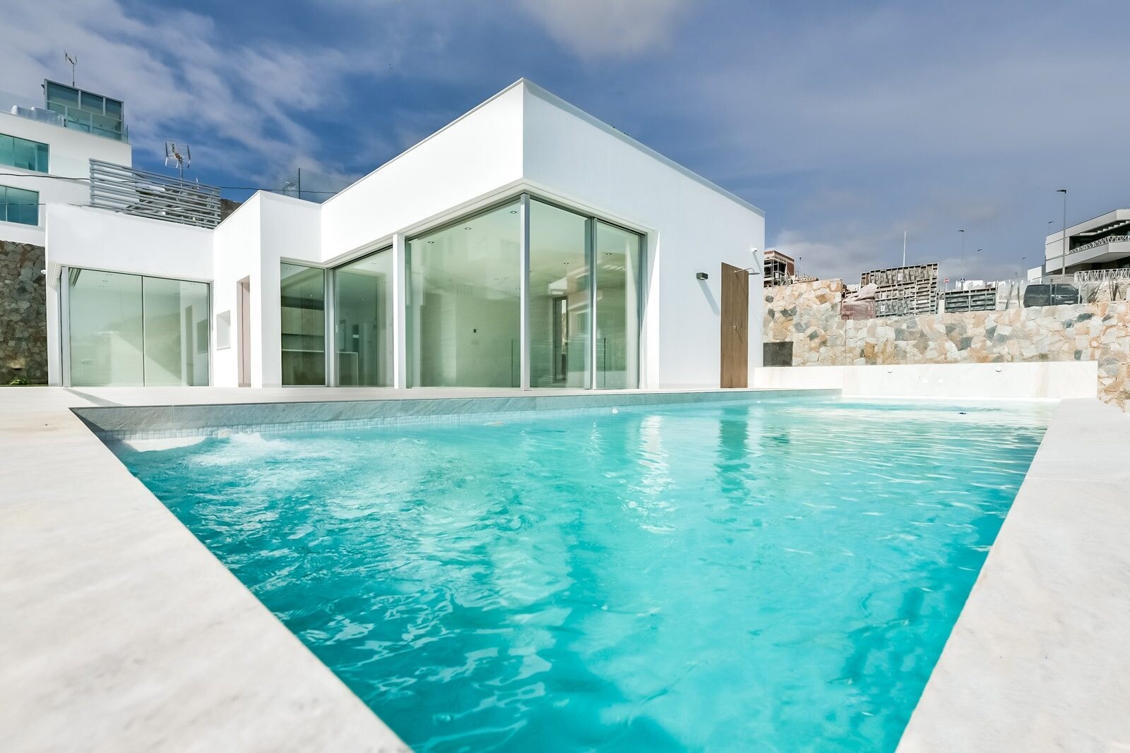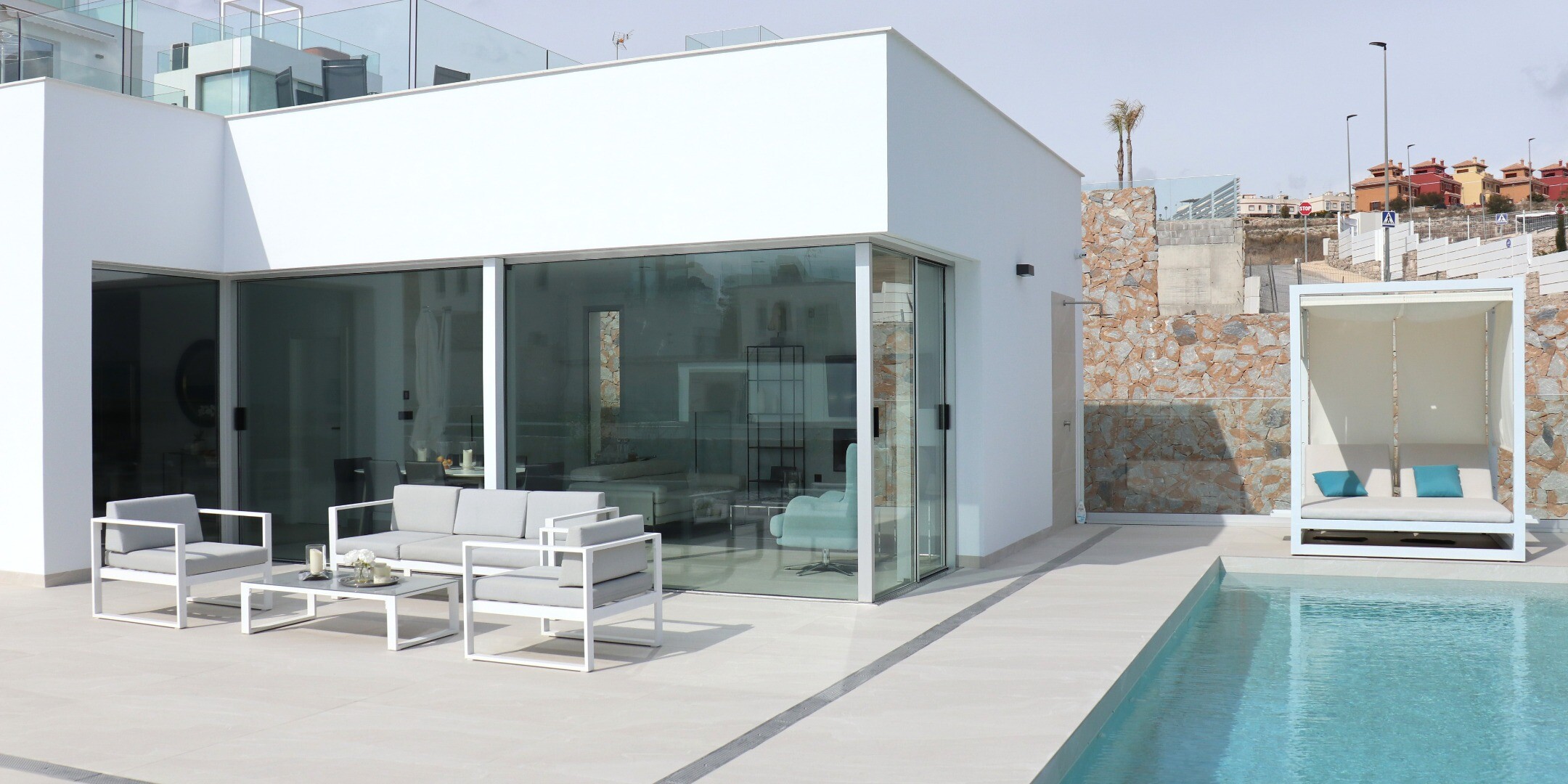 Bevoorrechte omgeving en op slechts 5 km van de zee. Project dat uitzicht op zee, licht en een bijzonder ontwerp combineert op basis van rechte lijnen, felgekleurde afwerkingen en grote ramen. Villa type P-2: Het souterrain is verdeeld in 2 slaapkamers, 1 badkamer en een multifunctionele ruimte (woonkamer, bioscoop, fitnessruimte) De begane grond b...estaat uit een woonkeuken van ca. 44 m2. met toegang tot terras, 3 slaapkamers en 2 badkamers (1 en suite). Het bevat ook een zwembad, een tuin met bomen, een tuinhuisje en parkeergelegenheid voor 2 auto's.