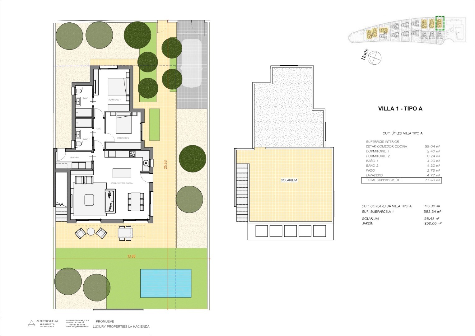 Deze villa heeft de perfecte mix tussen modern ontwerp, comfort en natuur. Deze unieke 2 slaapkamers en 2 badkamers villas met privé zwembad 2,4x6m zijn ontworpen om te dienen als permanente woning of als vakantiewoning. Ze worden gebouwd op een grondstukken van +/- 300m2 en hebben een parkeerplaats en een daksolarium waar u kan genieten van het wi...jdse uitzicht over Hacienda del Alamo resort.