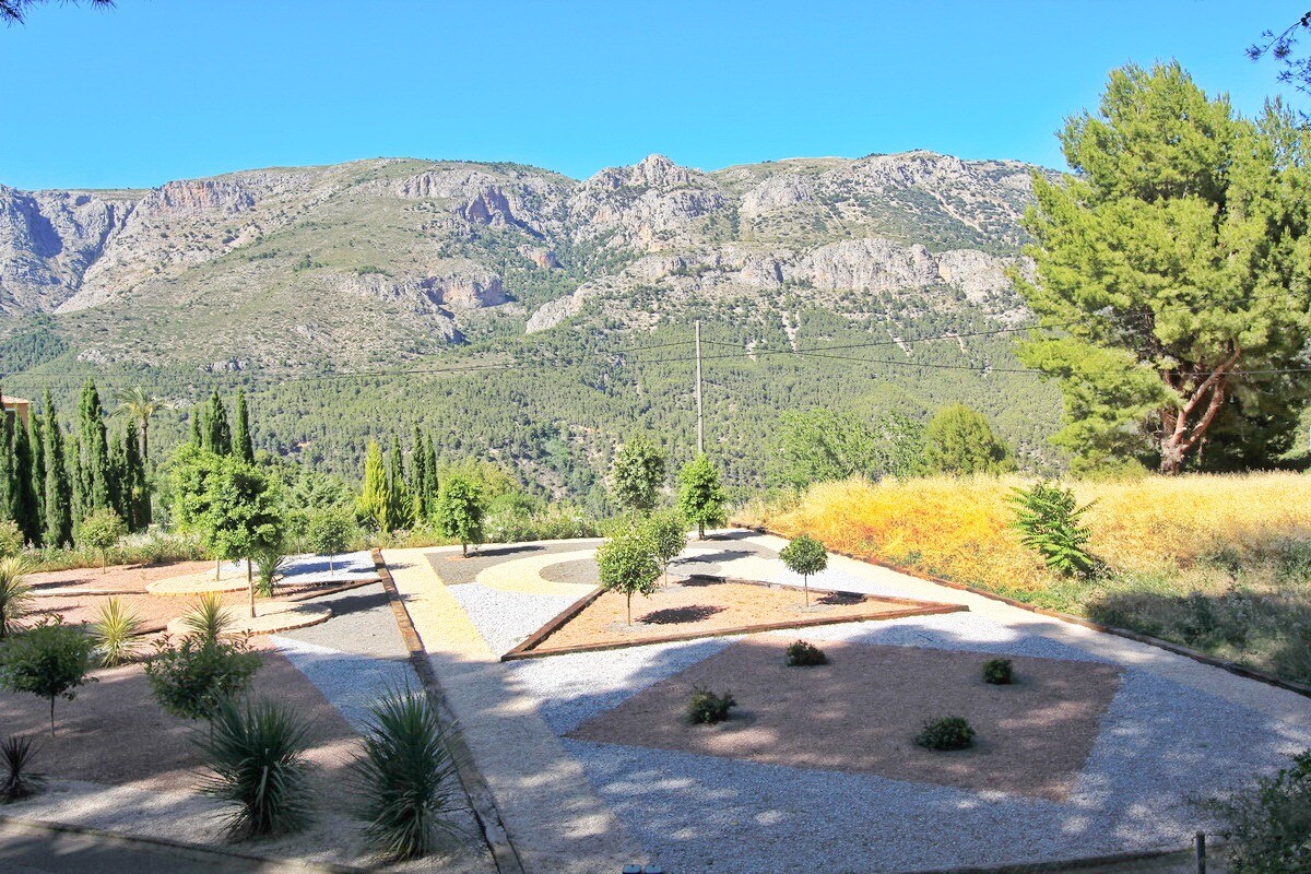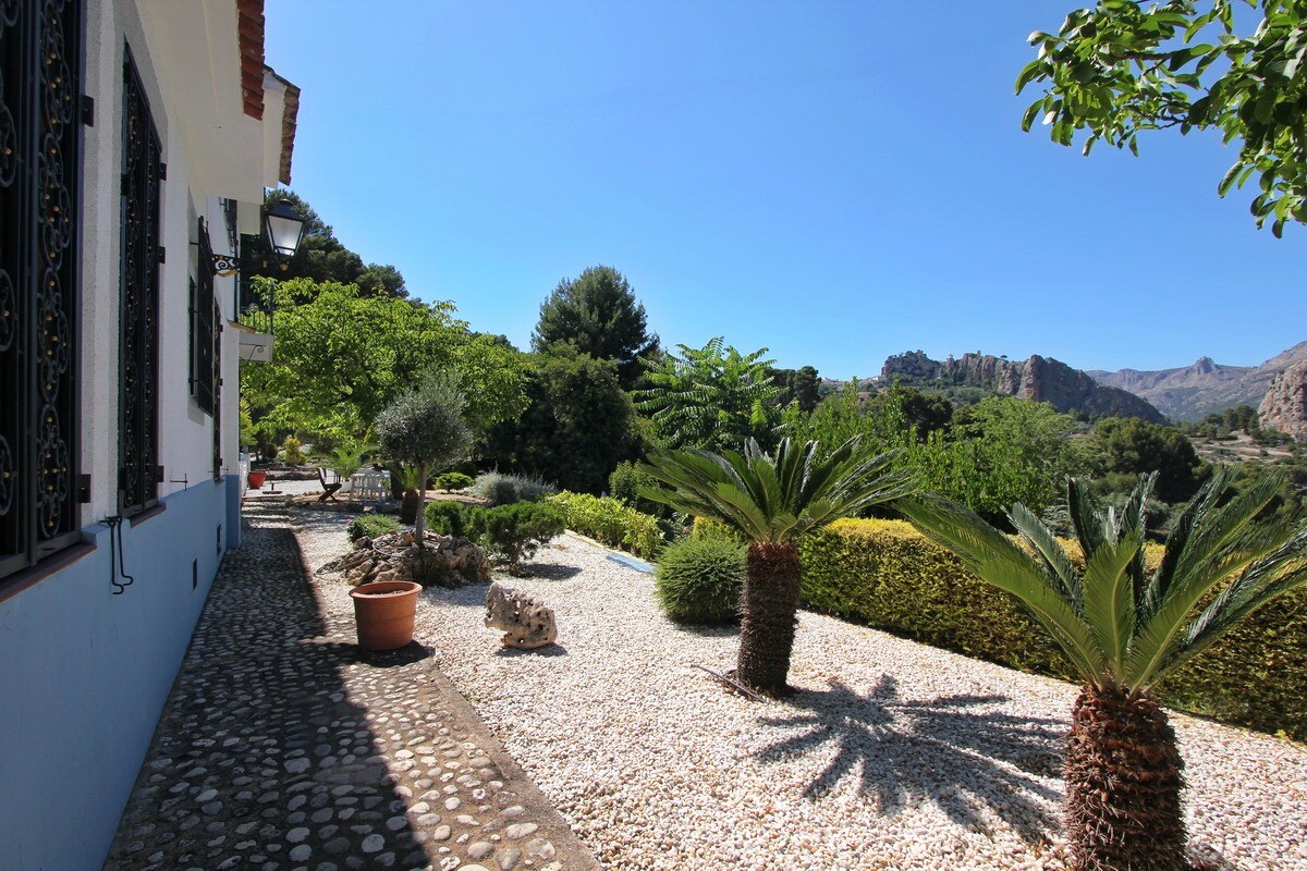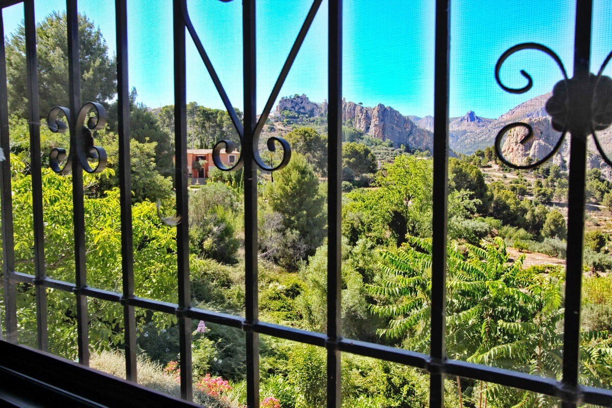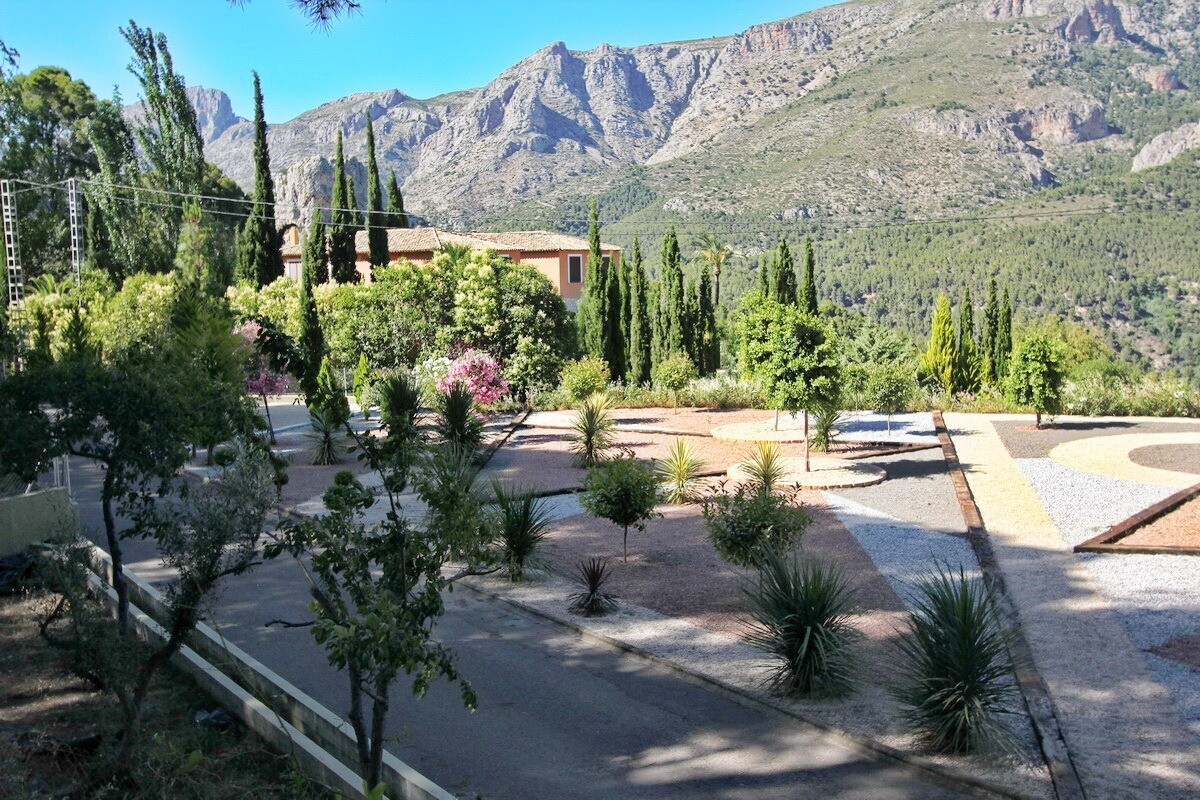 Het pand ligt in een uitgestrekte tuin van meer dan 5900 m² en heeft direct uitzicht op de omliggende bergen en het middeleeuwse kasteel van Guadalest.