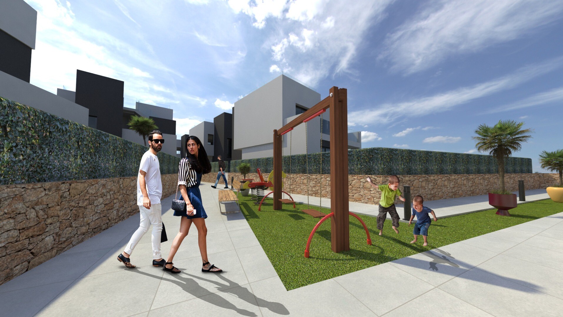 Elke woning heeft zijn eigen perceel, waar verschillende recreatie- en pleziergebieden worden ontwikkeld, omdat het percelen zijn die passen bij het terrein. Met uitzicht op zee vanaf Solarium Floor.