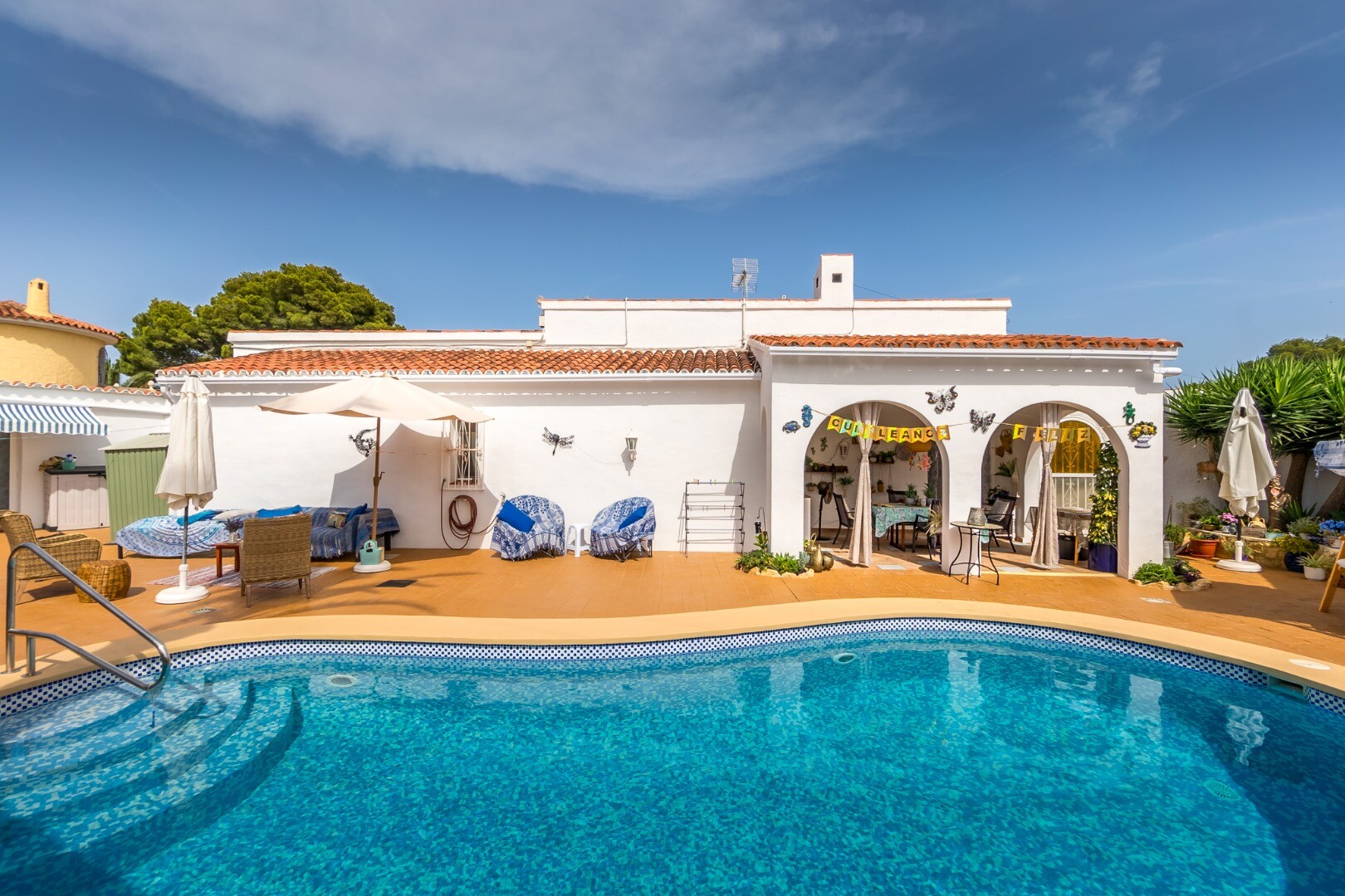 De buitenruimte is bijzonder uitnodigend en functioneel, met een privézwembad, een barbecue, een mooie veranda en een goed onderhouden, onderhoudsarme tuin.