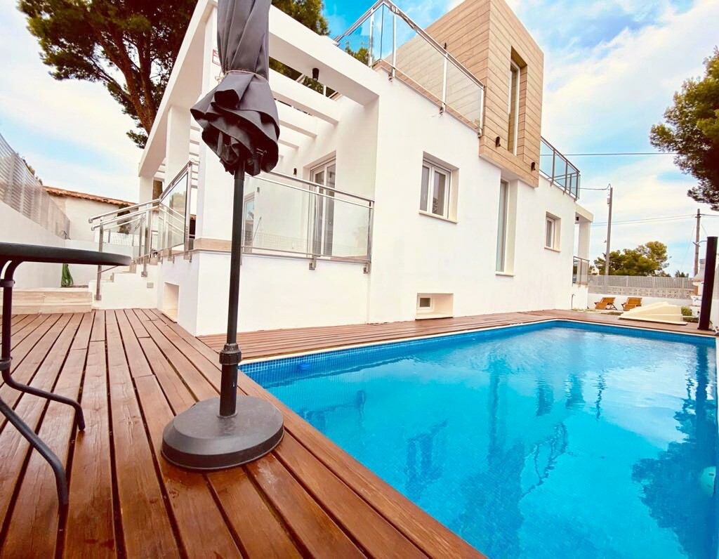 Fantastische nieuw gebouwde moderne villa met privé zwembad in het gewilde gebied van La Nucia - dichtbij de prestigieuze internationale school van Elian's! Het pand had veel extra's, waaronder dubbele beglazing, warme en koude airconditioning, wasruimte, parkeergelegenheid voor maximaal 5 auto's. Er is ook een pre-installatie van zonnepanelen, moc...ht de nieuwe eigenaar ze willen plaatsen. Heerlijk zwembad en diverse terrassen. Het huis heeft ook een zeer grote kelder waar zich een wasruimte, een slaapkamer en een zeer grote woonkamer bevindt waar al een pre-installatie voor een keuken aanwezig is, mocht de nieuwe eigenaar op deze verdieping een andere keuken willen installeren. Bezichtiging wordt sterk aanbevolen.