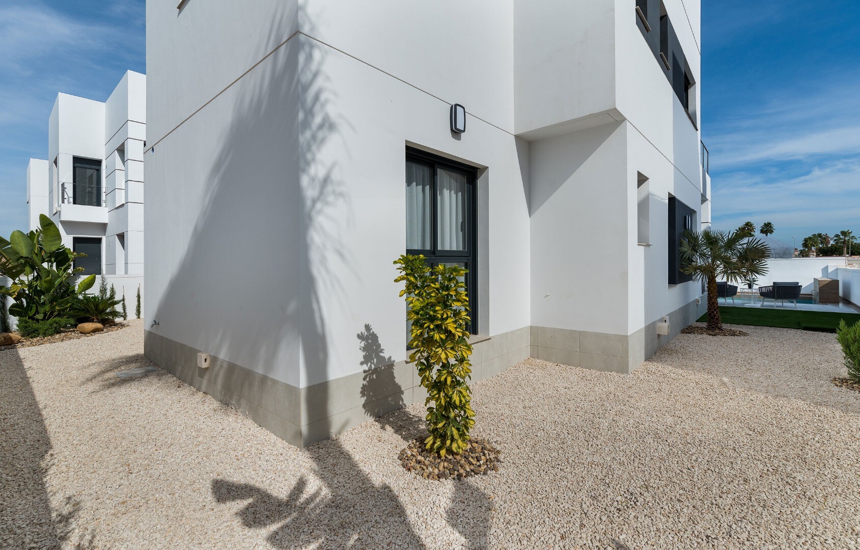 Deze villa is een van de nieuwe moderne ontwerpen van deze bouwer met rechte lijnen waarbij het beenwit wordt gemengd met het effect van steen op de gevel. Deze woning heeft 3 slaapkamers, waarvan één met eigen badkamer, gelegen op de begane grond. De villa bestaat uit 2 verdiepingen en een privésolarium van 30m2 welk toegankelijk is via een overde...kte trappenhal. De locatie aan de Costa Cálida is uitstekend: op slechts 10 minuten wandelen van de zee, allerlei diensten, winkelcentra, ziekenhuizen, College, recreatiegebieden, enz. De luchthaven van Corvera is bereikbaar in 30 minuten, Alicante in 60 minuten.