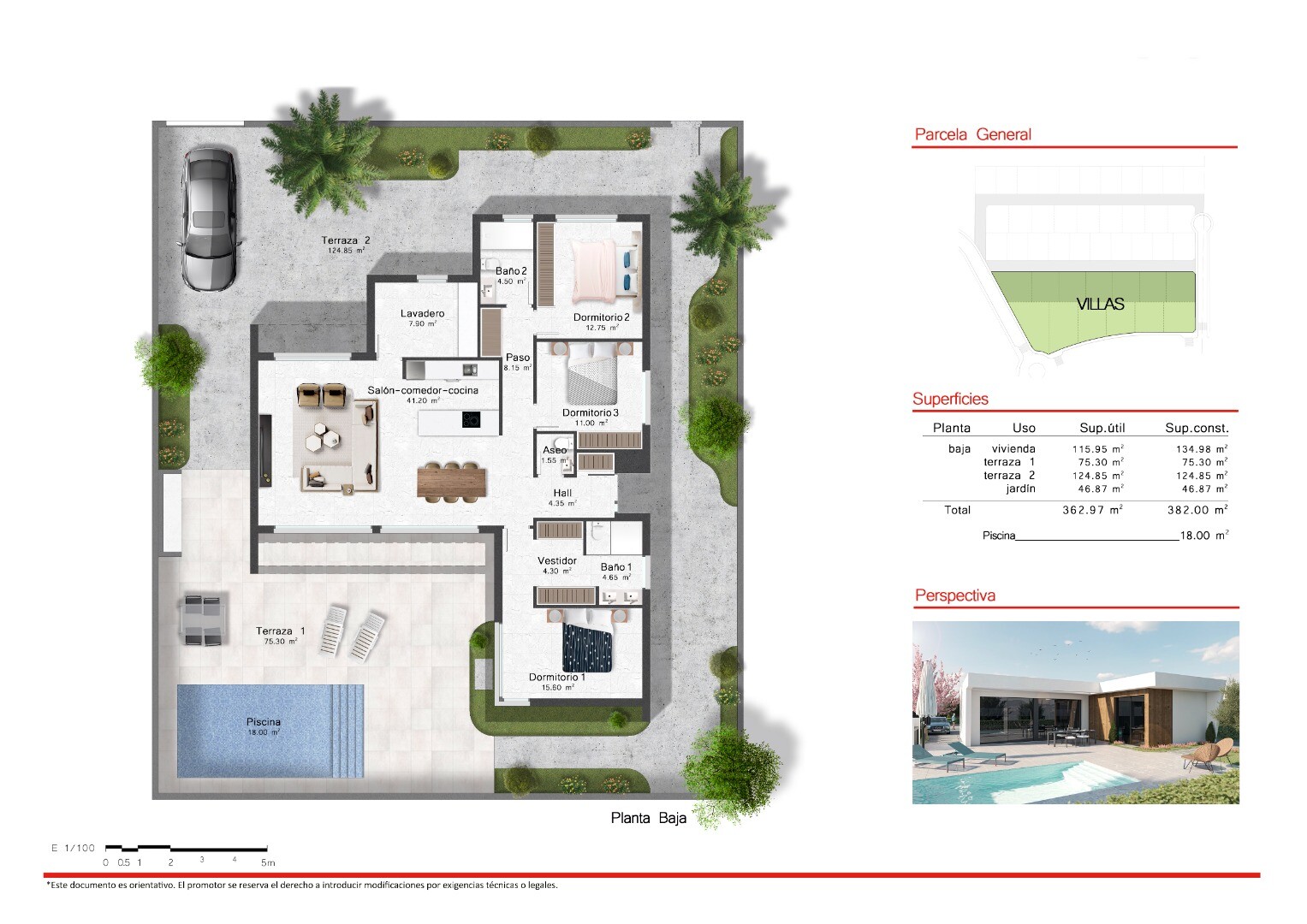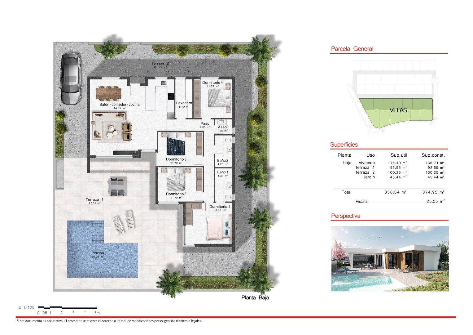 Mogelijkheid te kiezen uit 5 verschillende modellen van villa's. Villa's met 3 of 4 slaapkamers en villa's met 3 slaapkamers en een gesloten garage in plaats van privé parkeerplaats. Grondstukken te kiezen van 424m2 tot 733m2. De luchthaven van Corvera ligt op slechts 10km.