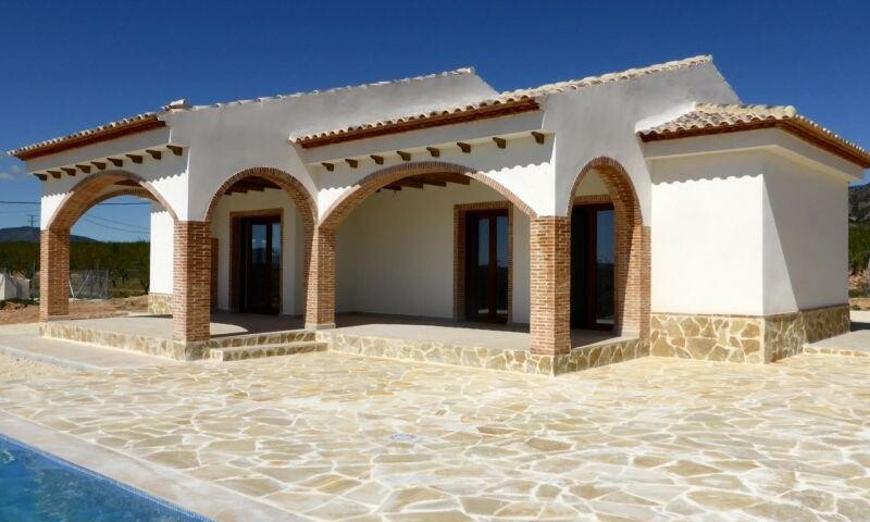 VILLA IN TYPISCH SPAANS DORP Fantastische nieuwbouw villa op een perceel van 10000 m2 in Pinoso. De villa heeft een bebouwde oppervlakte van 147,80m2, alles op een verdieping, met een veranda van 31,80m2, een woon-eetkeuken van 35,95m2, 3 slaapkamers, 2 badkamers, een galerij. Inbegrepen in de prijs: Pre-installatie airconditioning door kanalen. Ba...dkamers met badkamermeubel met spiegel, douchescherm en kranen. Elektrische apparatuur: keramische kookplaat, oven, afzuigkap, afwasmachine. Keuken met wit meubilair en nationaal graniet Interieur LED's in het hele huis en op de veranda Dubbele beglazing, binnendeuren en witte ingebouwde kasten. Buiten zonder gazon of planten. Omheind met automatische poort voor voertuigen en voetgangerspoort. Zwembad in extra Als u op zoek bent naar een rustige omgeving, dicht bij typisch Spaanse dorpjes, omgeven door bergen, dan is dit het huis voor u!