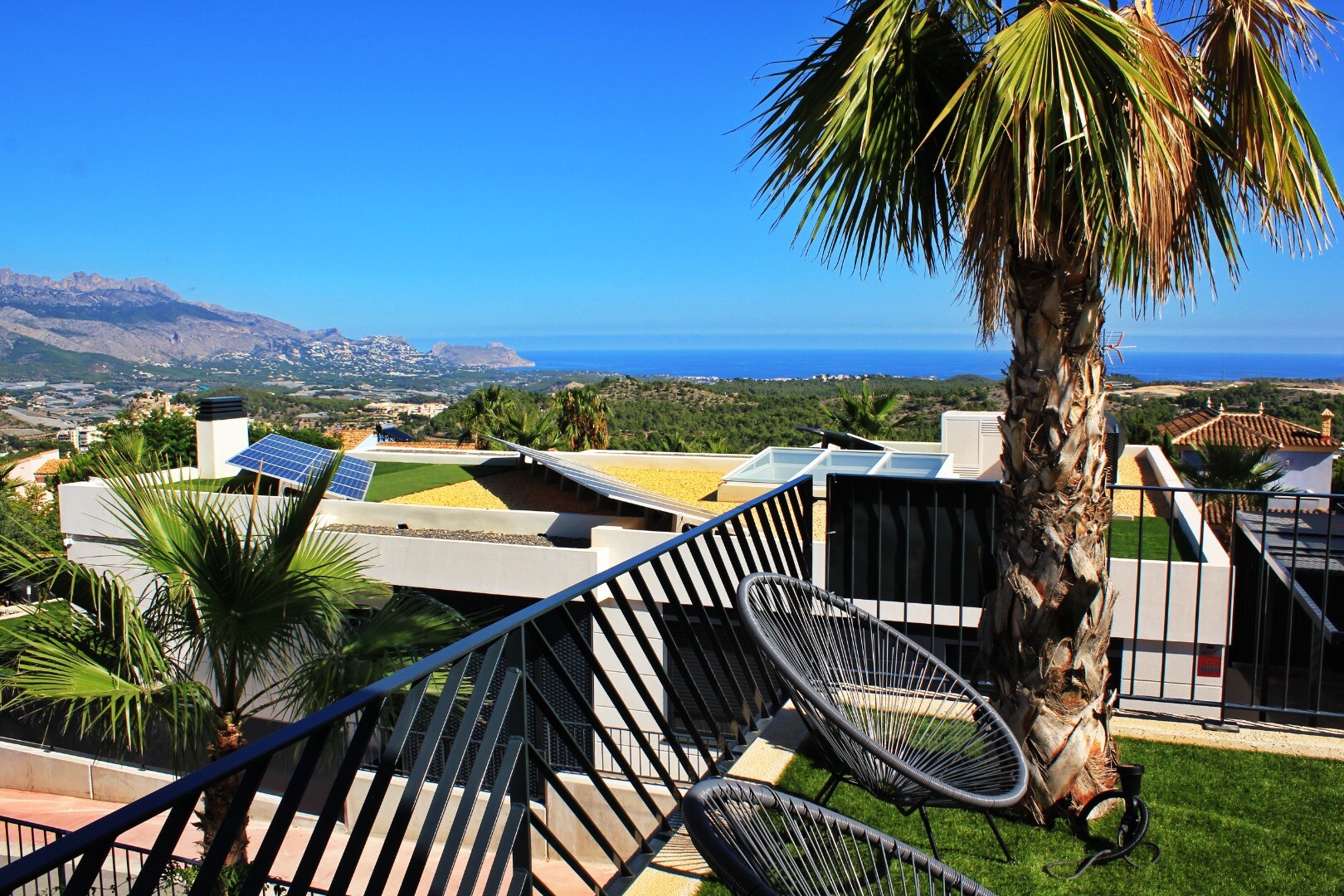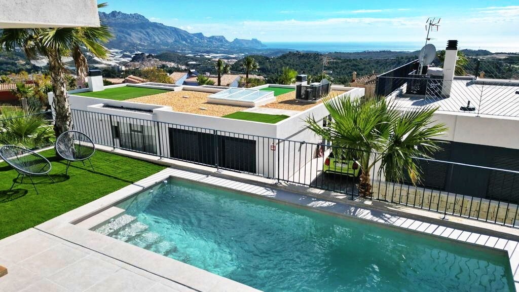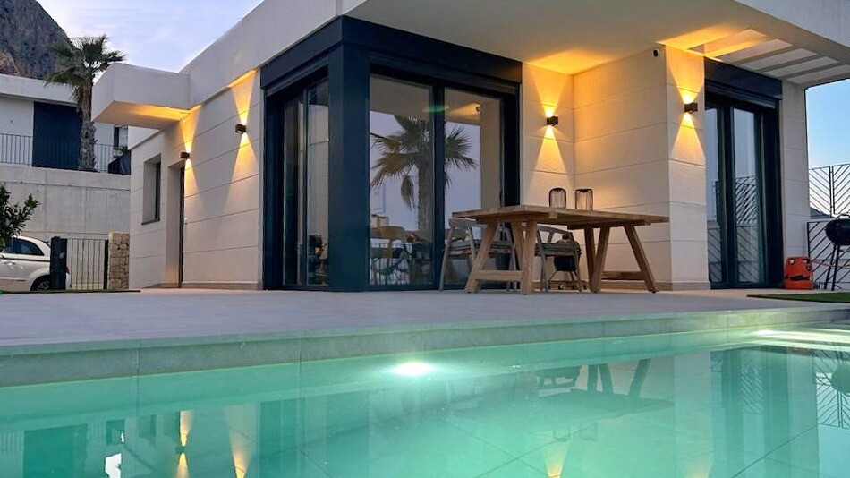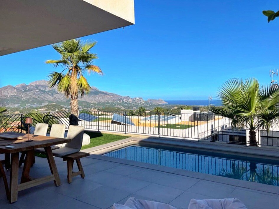 Moderne villa vol natuurlijk licht met een van de beste uitzichten op de Middellandse Zee en de omliggende kustdorpen. Klaar om nu in te trekken. Privézwembad, privéparkeergelegenheid, zonnepanelen, airconditioning (w...arm/koud), hoogwaardige apparatuur, gemeenschappelijke ruimtes met kinderspeelplaats, sociale club, gemeenschappelijk zwembad en tuinen en 24/7 beveiliging en bewaking.