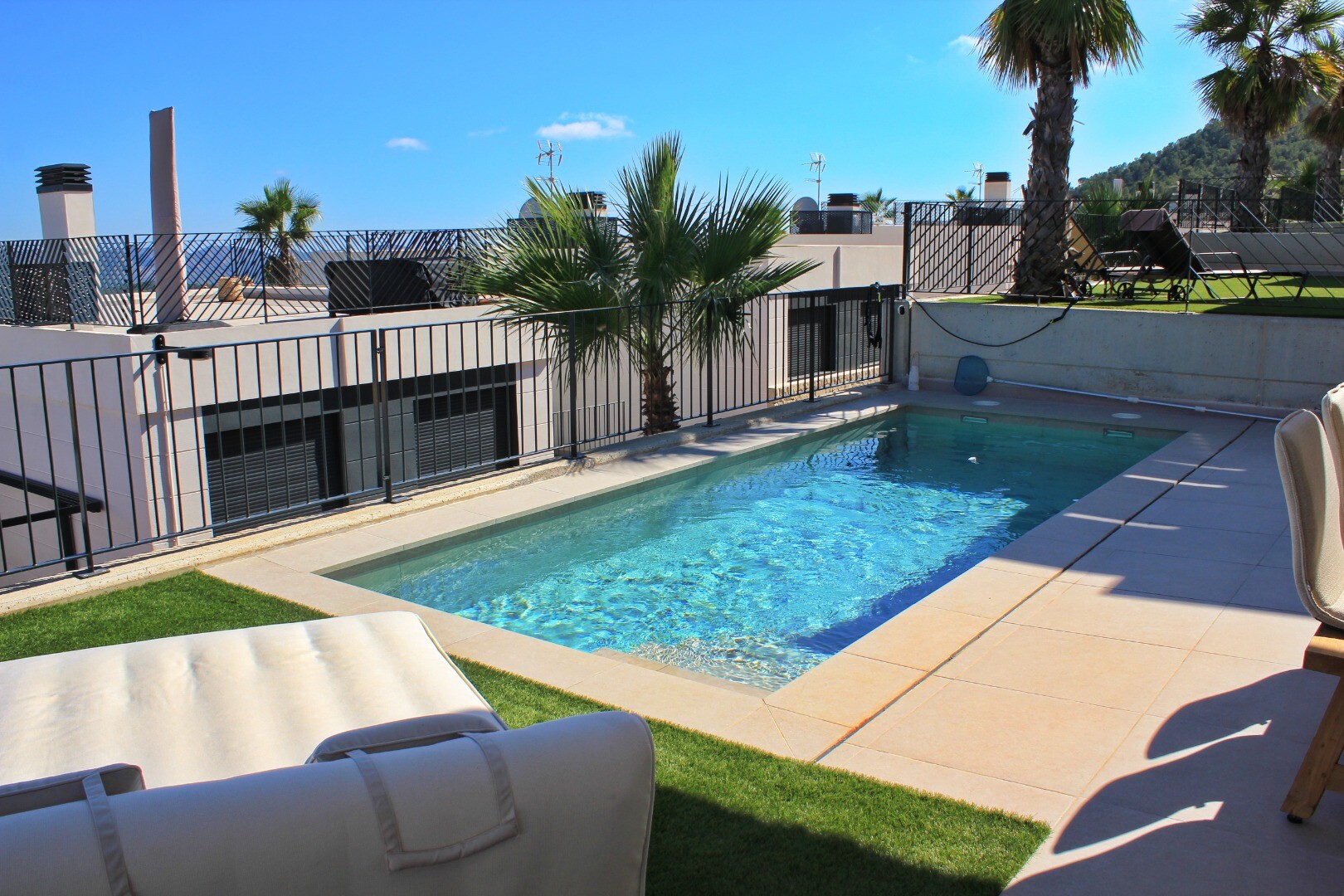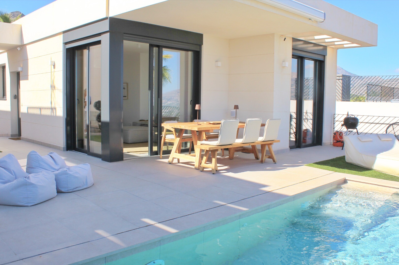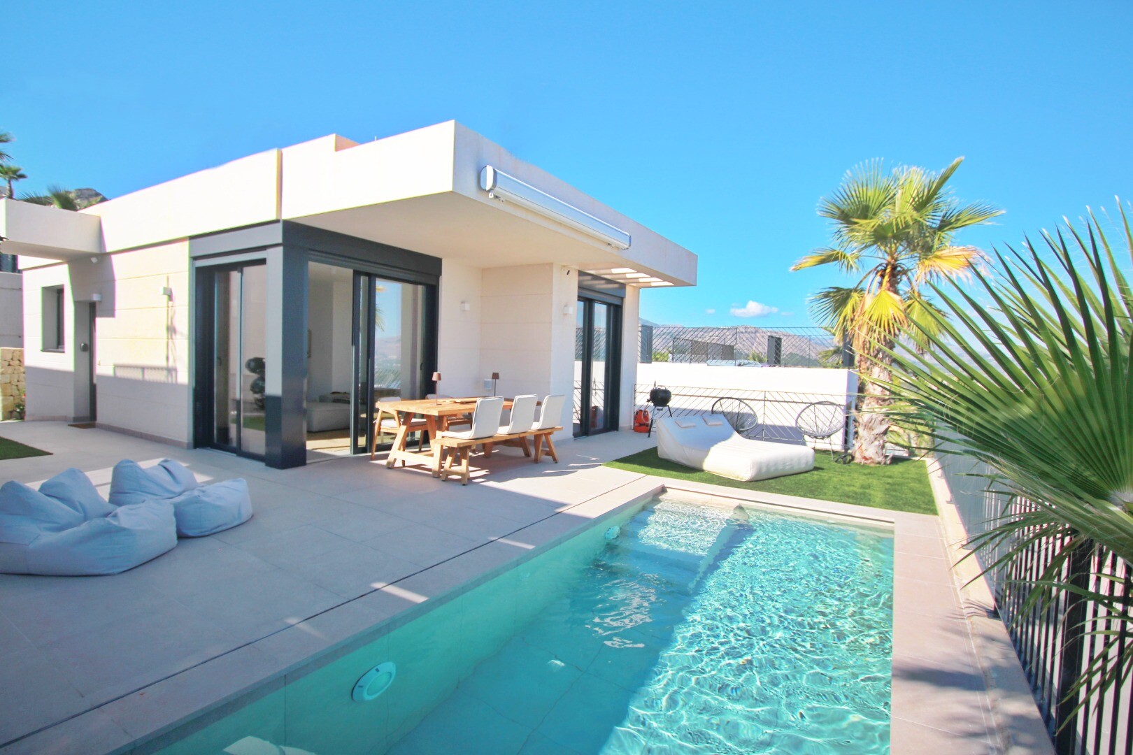Moderne villa vol natuurlijk licht met een van de beste uitzichten op de Middellandse Zee en de omliggende kustdorpen. Klaar om nu in te trekken. Privézwembad, privéparkeergelegenheid, zonnepanelen, airconditioning (w...arm/koud), hoogwaardige apparatuur, gemeenschappelijke ruimtes met kinderspeelplaats, sociale club, gemeenschappelijk zwembad en tuinen en 24/7 beveiliging en bewaking.