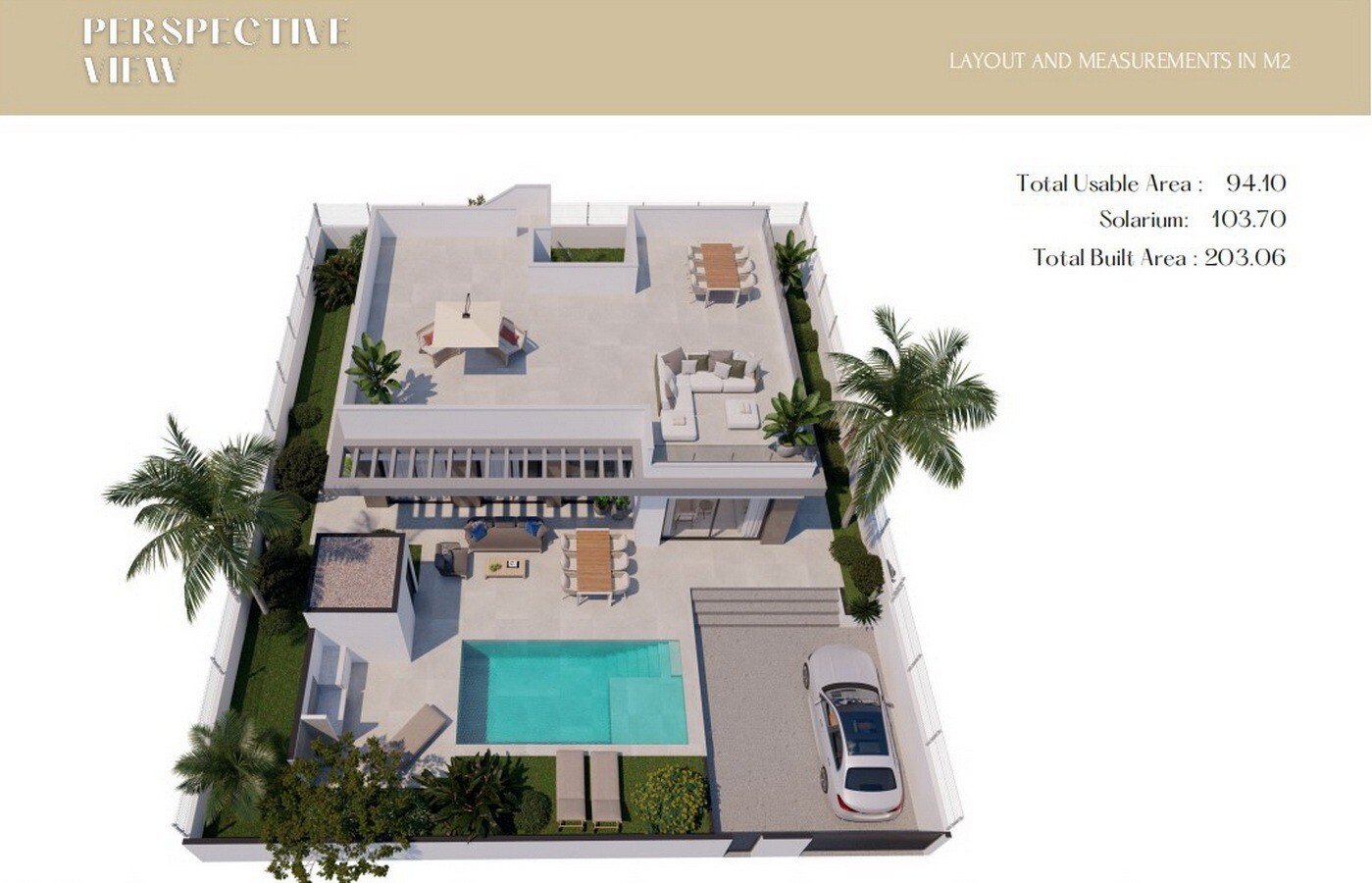 Van deze villa benadrukken we de gevel enorm tot een uitstekend vegetatiegebied, evenals uitzicht op de zee vanaf het solarium.