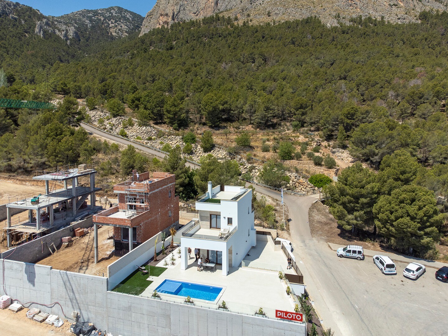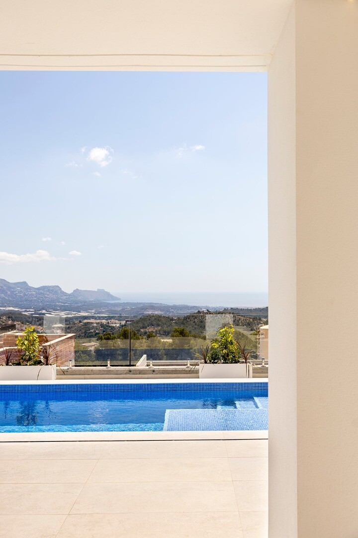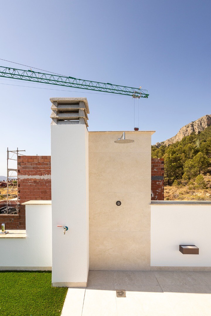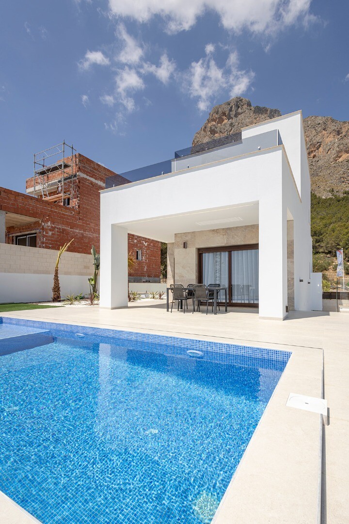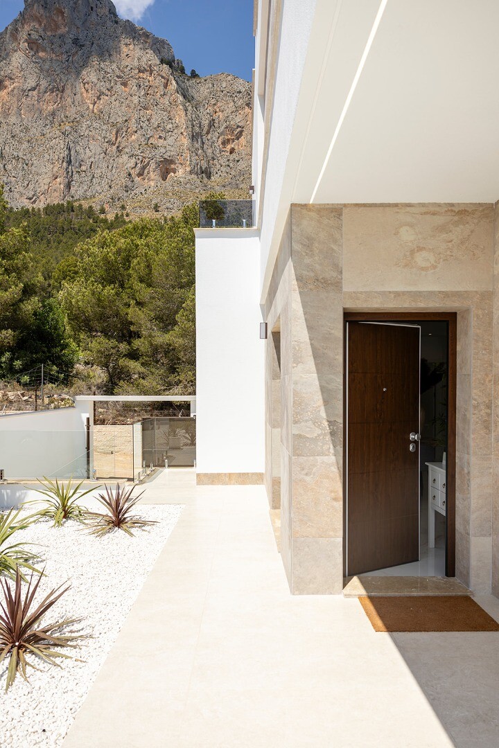 Exclusieve vrijstaande nieuwbouwwoning gelegen in een rustige woonwijk van Polop, omgeven door natuur en met gemakkelijke toegang tot alle voorzieningen en de stranden van de Costa Blanca.