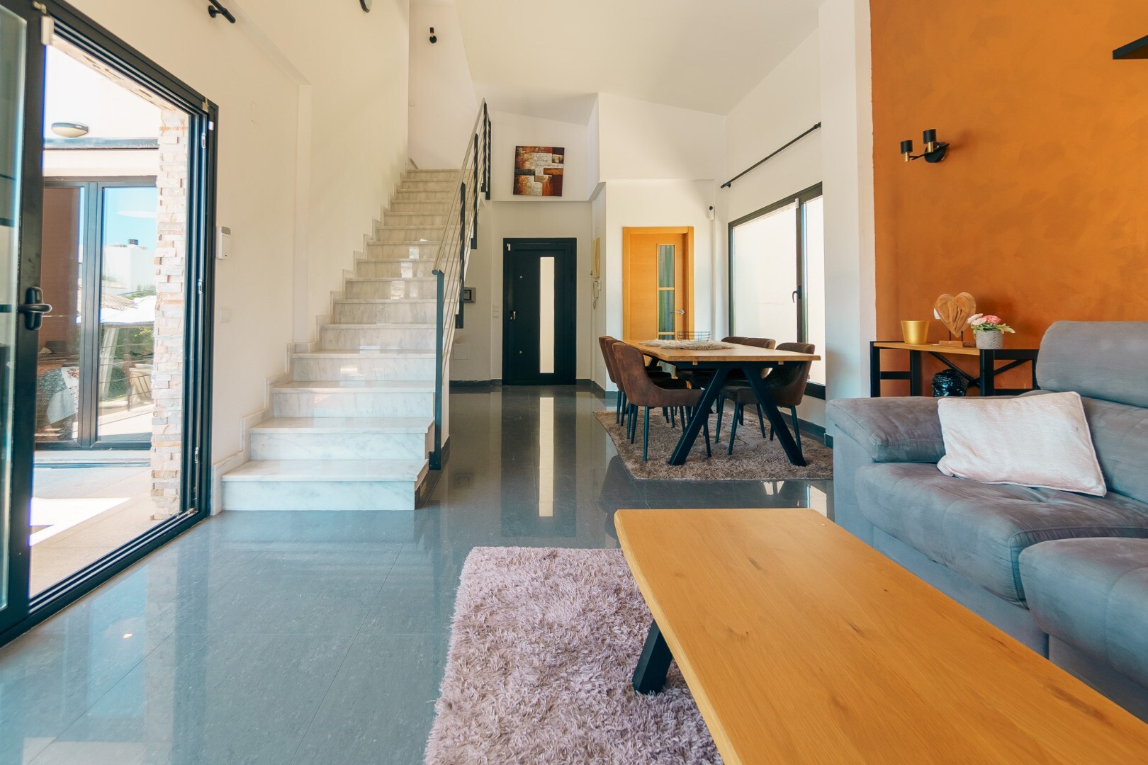 Deze moderne villa is gelegen in een rustige urbanisatie in Polop en staat op een perceel van 400 m² met een privézwembad, een onderhoudsvriendelijke tuin en een gezellige barbecueplek – perfect om buiten te leven.