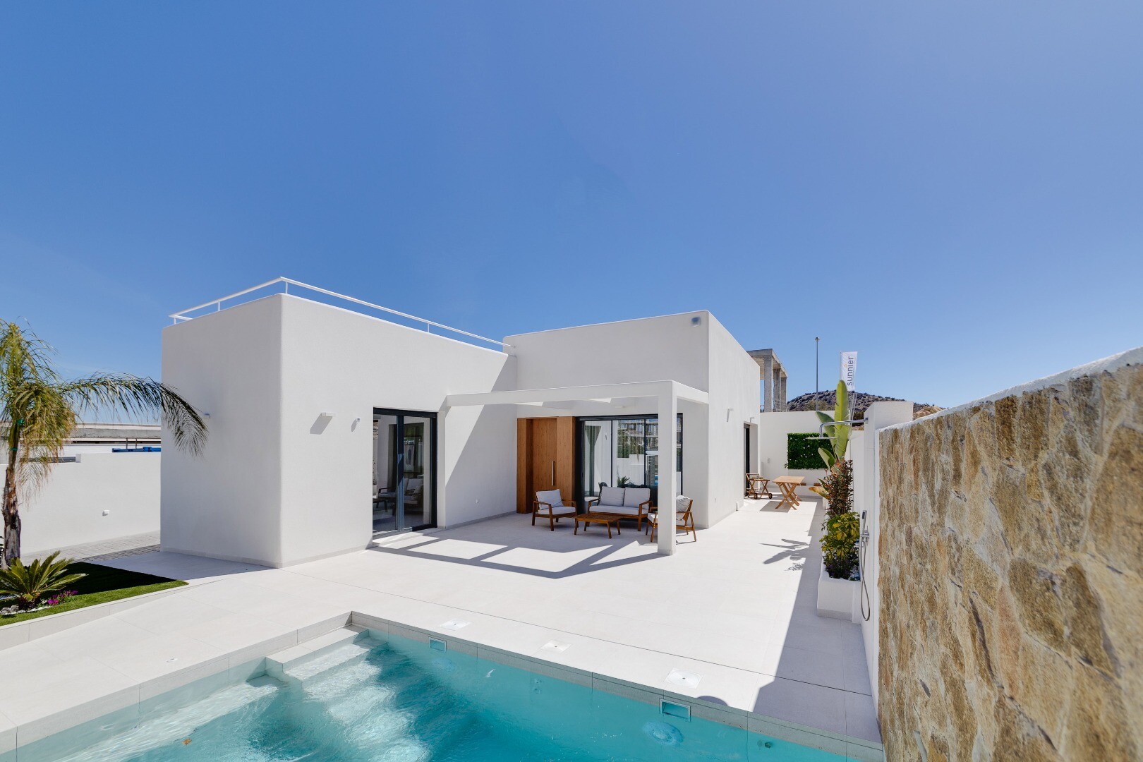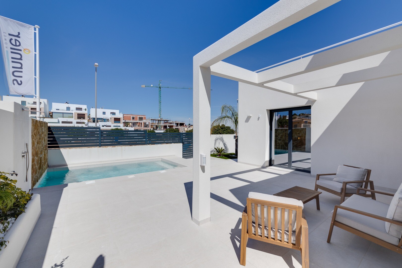Deze moderne vrijstaande villa in La Marquesa Golf, Rojales, biedt een stijlvol en functioneel ontwerp. Met 101 m² bebouwd op een perceel van 307 m² heeft deze woning 2 slaapkamers en 2 badkamers. De woon-eetkamer is perfect geïntegreerd met een open keuken, uitgerust met meubilair en apparatuur van hoge kwaliteit. De villa beschikt over een kelder... van 101 m², die extra ruimte biedt voor opslag of aanpassing aan jouw wensen. Daarnaast is er een solarium van 60 m², ideaal om te ontspannen en te genieten van het mediterrane klimaat. De ruime terrassen en tuin bieden een perfecte omgeving voor het buitenleven. Het pand heeft parkeergelegenheid op het perceel en een privézwembad, ideaal om af te koelen op warme dagen. Uitgerust met aerothermische verwarming en airconditioning, garandeert de villa comfort en energie-efficiëntie. De ligging is uitstekend, op slechts 600 meter van La Marquesa Golf en op 10 minuten van de prachtige stranden van Guardamar. Deze villa in La Marquesa Golf combineert luxe, comfort en een bevoorrechte locatie, perfect voor wie op zoek is naar een ontspannen en verfijnde levensstijl.