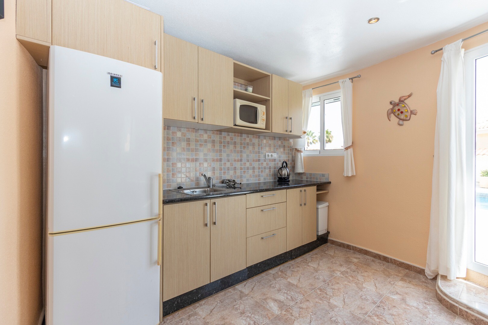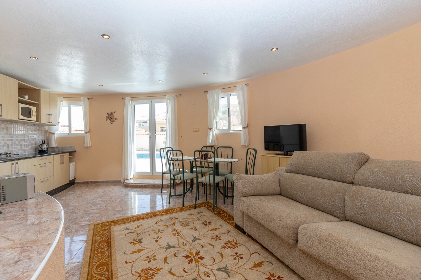 Op een perceel van bijna 600m² staat een prachtige woning op het zuiden, met een groot gedeeltelijk beglaasd terras. Het hoofdgebouw bestaat uit een woon-eetkamer met open haard, een complete keuken, 3 tweepersoonsslaapkamers, waarvan één met een eigen badkamer, en nog een complete familiebadkamer. In het semi-souterrain bevindt zich een studio met... eigen ingang, eigen keuken en grote badkamer. Het huis heeft verschillende grote bergingen, een zomerkeuken, een groot zonnig zwembad en veel buitenruimte om het hele jaar door van te genieten.