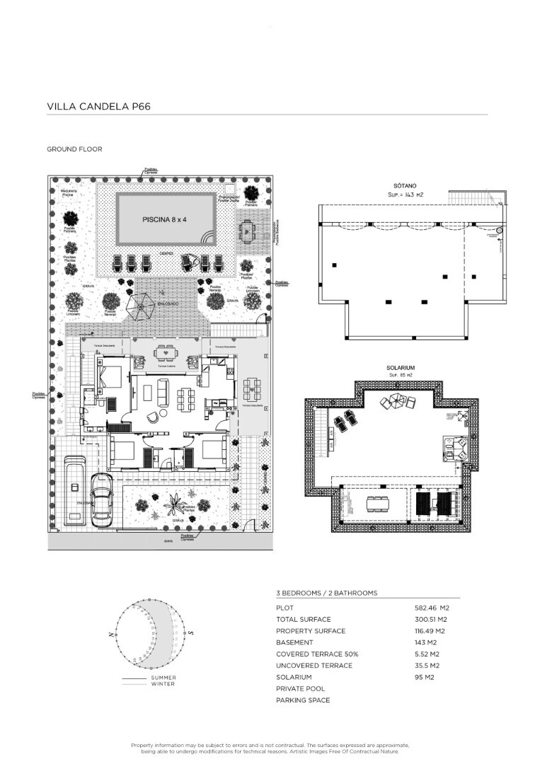 Aan de buitenkant vindt u een privétuin met zwembad (8x4m), waar u heerlijk kunt ontspannen en genieten van het mediterrane klimaat. Daarnaast beschikt de villa over een grote kelder die een multifunctionele ruimte kan zijn die voor verschillende doeleinden kan worden ingericht, zoals een recreatieruimte, een fitnessruimte en/of een berging.