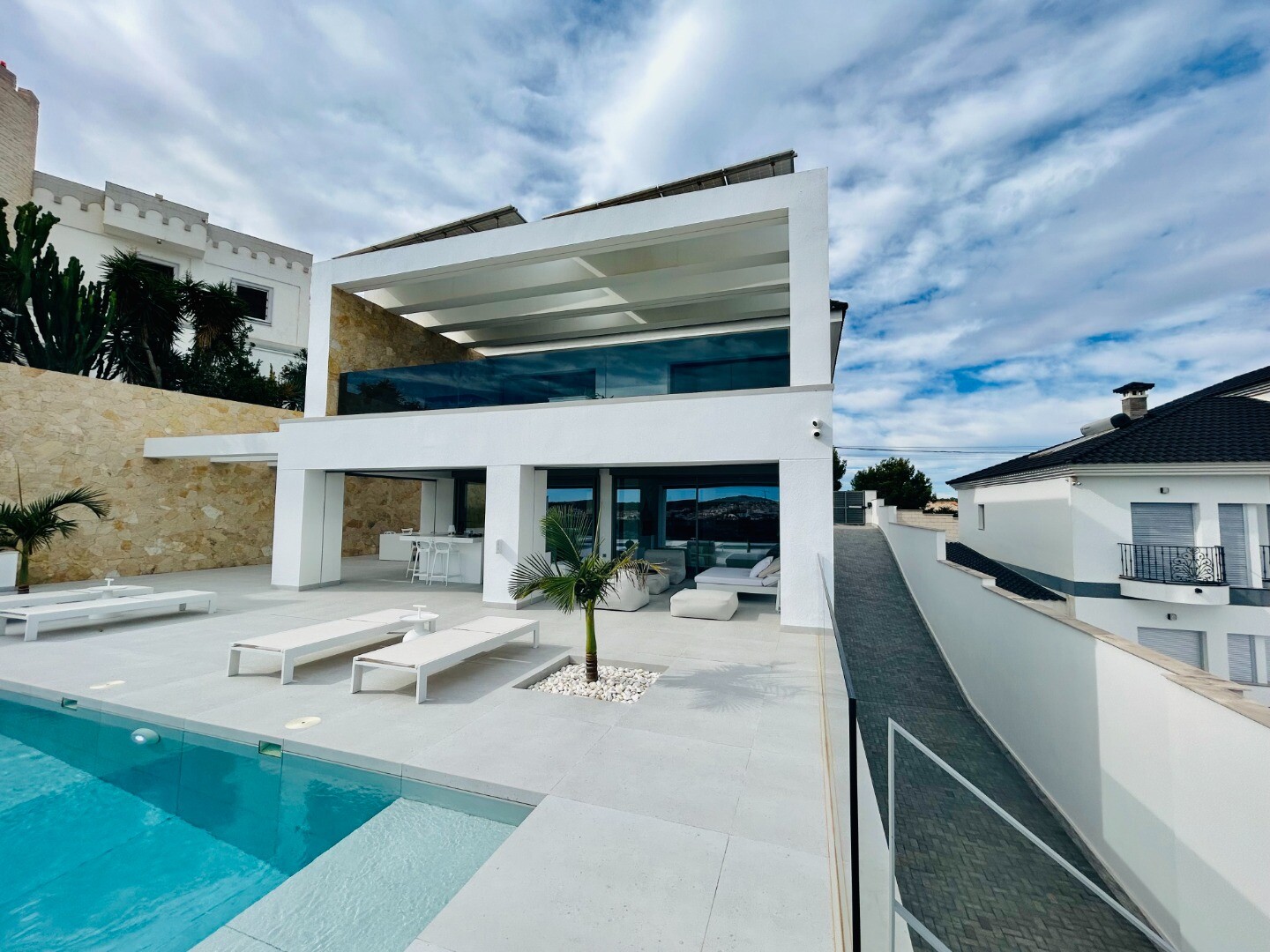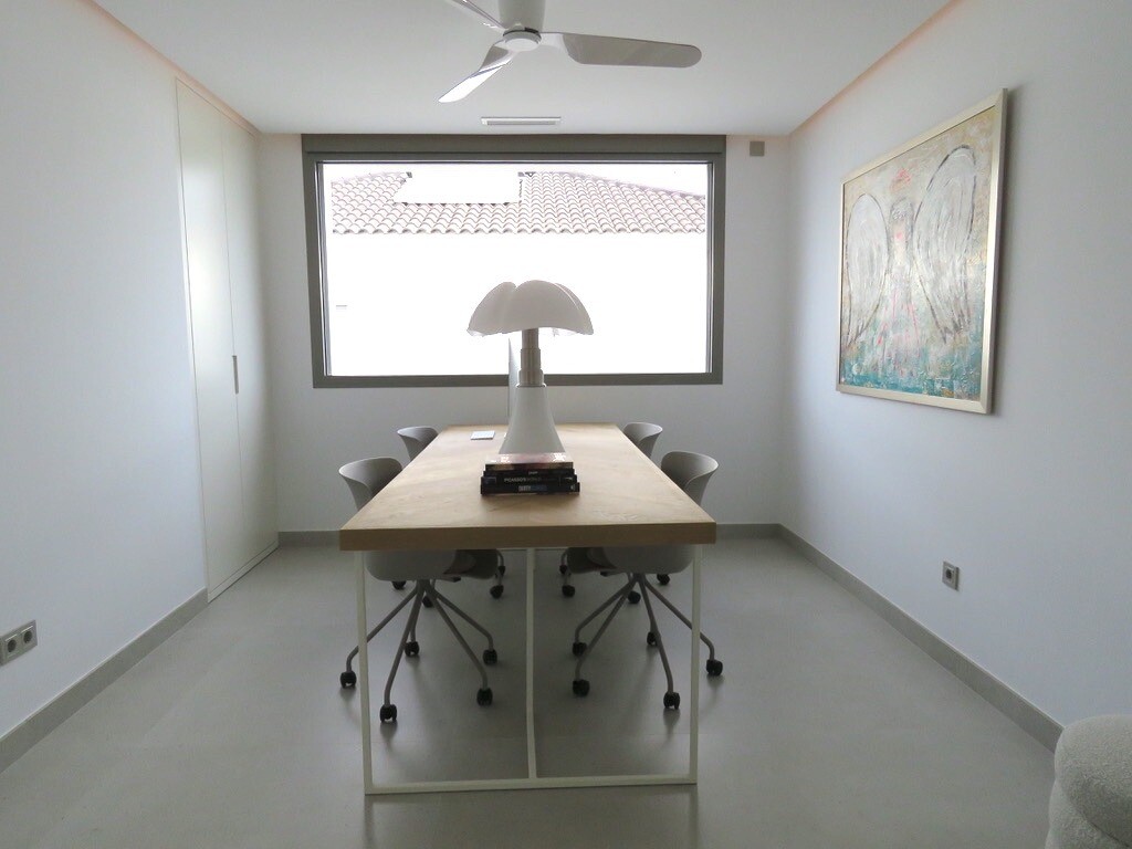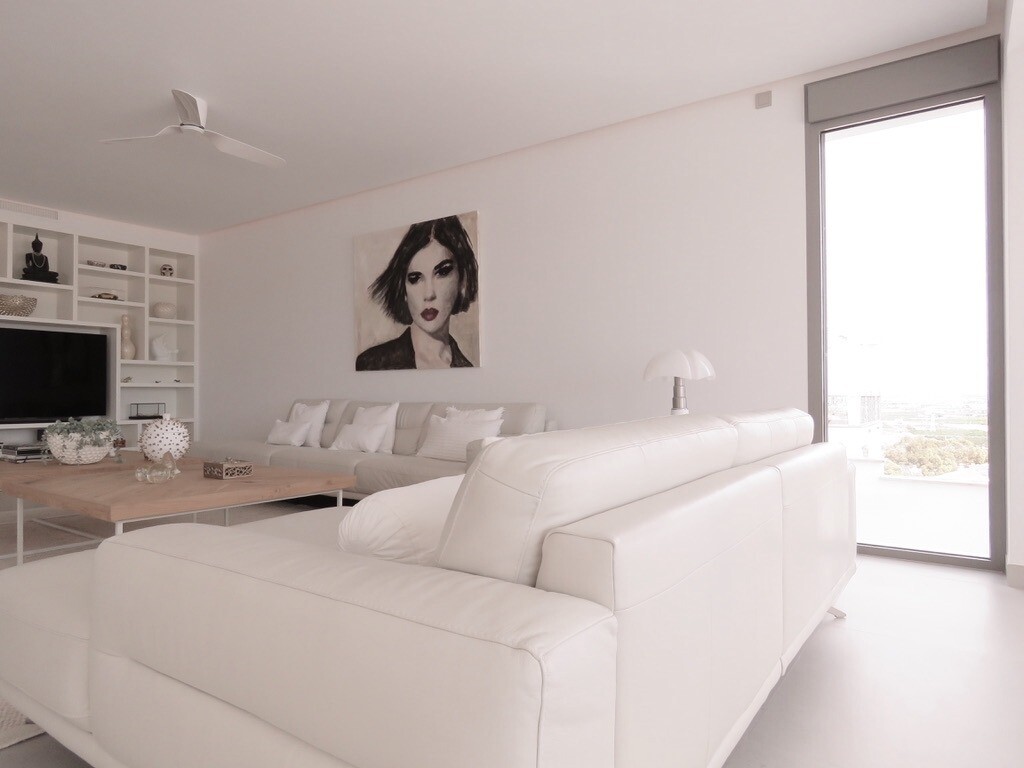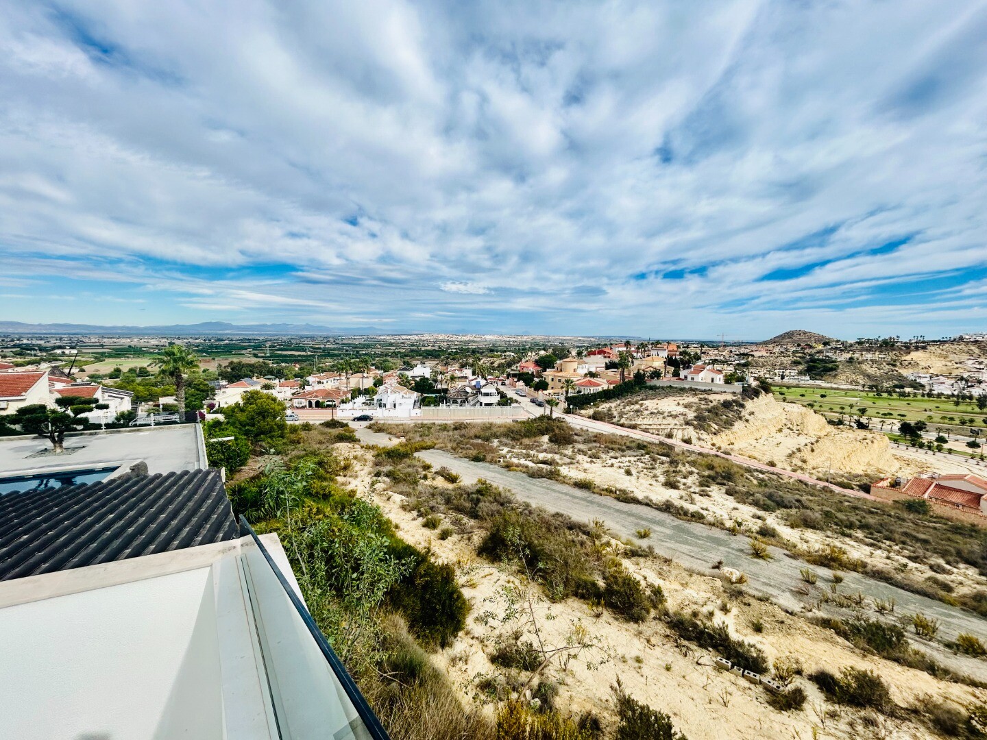 Solarium van 66m2. Deze design villa is uitgerust met de nieuwste technologie en alle materialen zijn zorgvuldig gekozen. Op de begane grond bevindt zich de woon- en eetkamer met keuken, bijkeuken en ook het overdekte terras. Op de eerste verdieping hebben we 3 slaapkamers en 3 badkamers. Op garageniveau bevindt zich uiteraard de garage met ruimte ...voor 8 auto's, een entertainmentruimte en de 4de slaapkamer en badkamer. Alle verdiepingen van het huis zijn voorzien van vloerverwarming en het huis is ook volledig voorzien van airconditioning. De lift brengt u vanuit de garage naar de bovenste verdieping van de woning. Deze prachtige villa is tevens voorzien van zonnepanelen. Deze villa heeft een zwembad 12x2m, een buiten douche met wc en lavabo. Het commercieel centrum met clubhuis van La Marquesa Golf ligt op slechts 900m van deze villa. De luchthaven van Alicante is bereikbaar in 30 minuten.