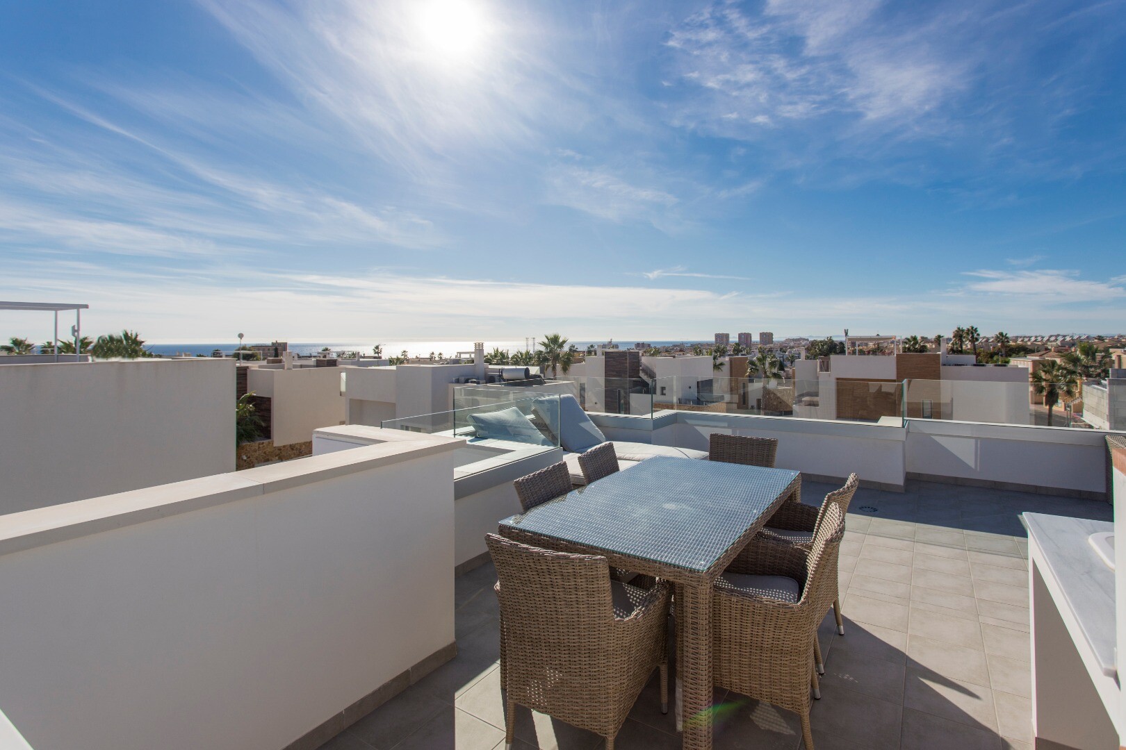 Slechts 5 minuten van het centrum van Torrevieja en 900 meter van het strand van La Mata. De omgeving is zeer goed bereikbaar en je vindt er allerlei voorzieningen. Mercadona op wandelafstand, een groot sportcomplex met binnen- en buitenzwembaden, speeltuinen, tennisbanen, bushaltes, bars en restaurants enz. Zelfs op wandelafstand van het "Quiron" privé ziekenhuis.