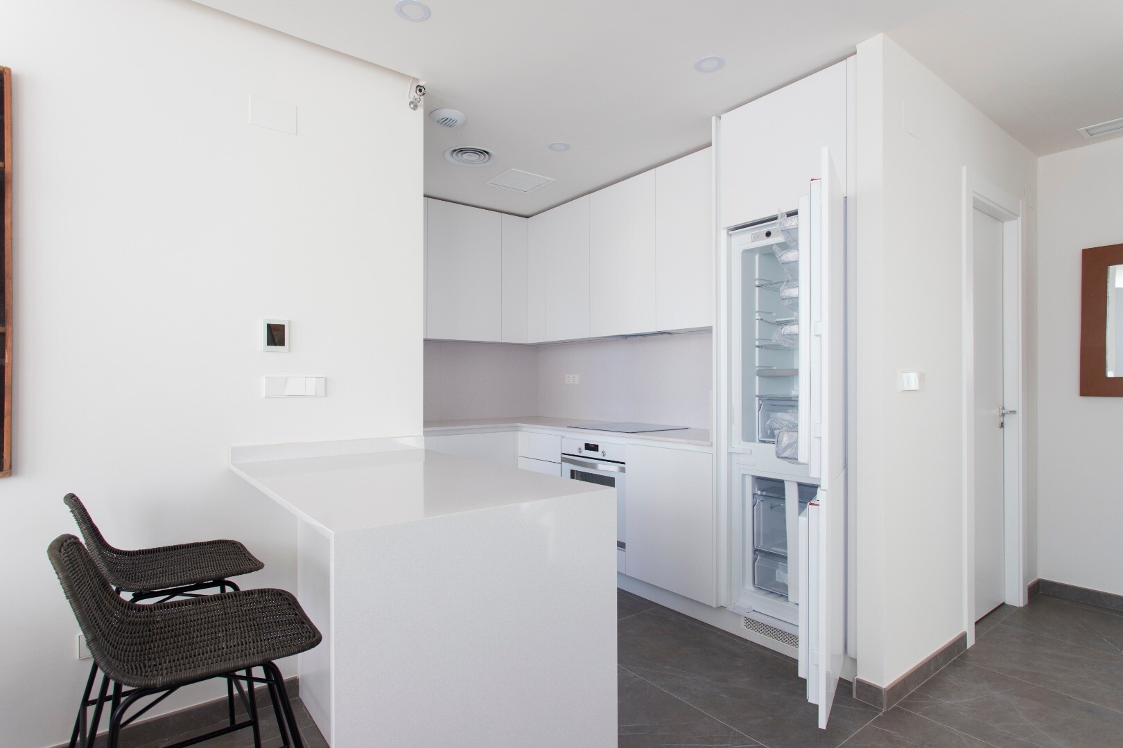 De woningen zijn voorzien va...n vloerverwarming, airconditioning, eigen parkeerplaats en volledig ingerichte badkamers en keukens.