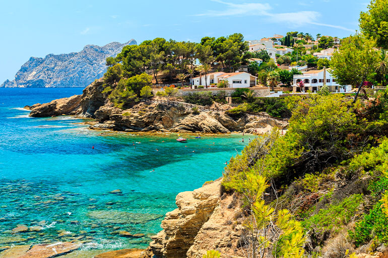 Calp heeft 13 kilometer kustlijn waar je een ruime keuze hebt aan stranden en baaien waar je kunt genieten van de zon en de Middellandse Zee.